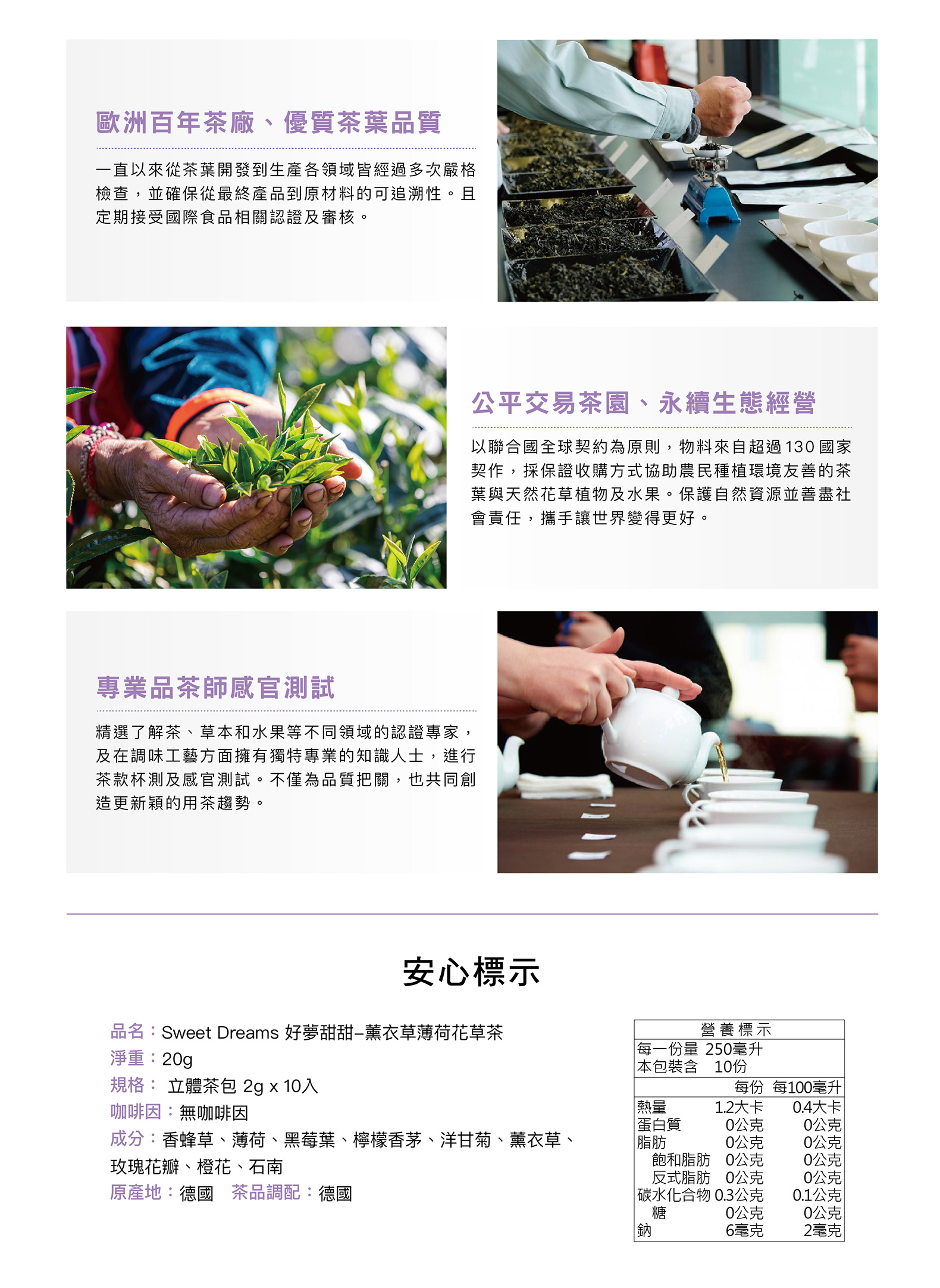名稱:【 CASS TEA 】好夢甜甜 薰衣草薄荷花草茶 茶包10入