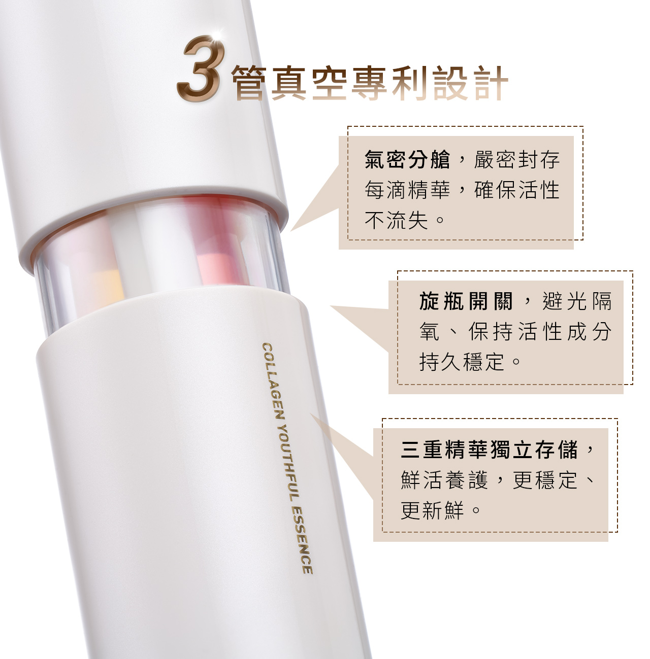 三管真空分艙,突破共存限制,完美封存活性精萃。