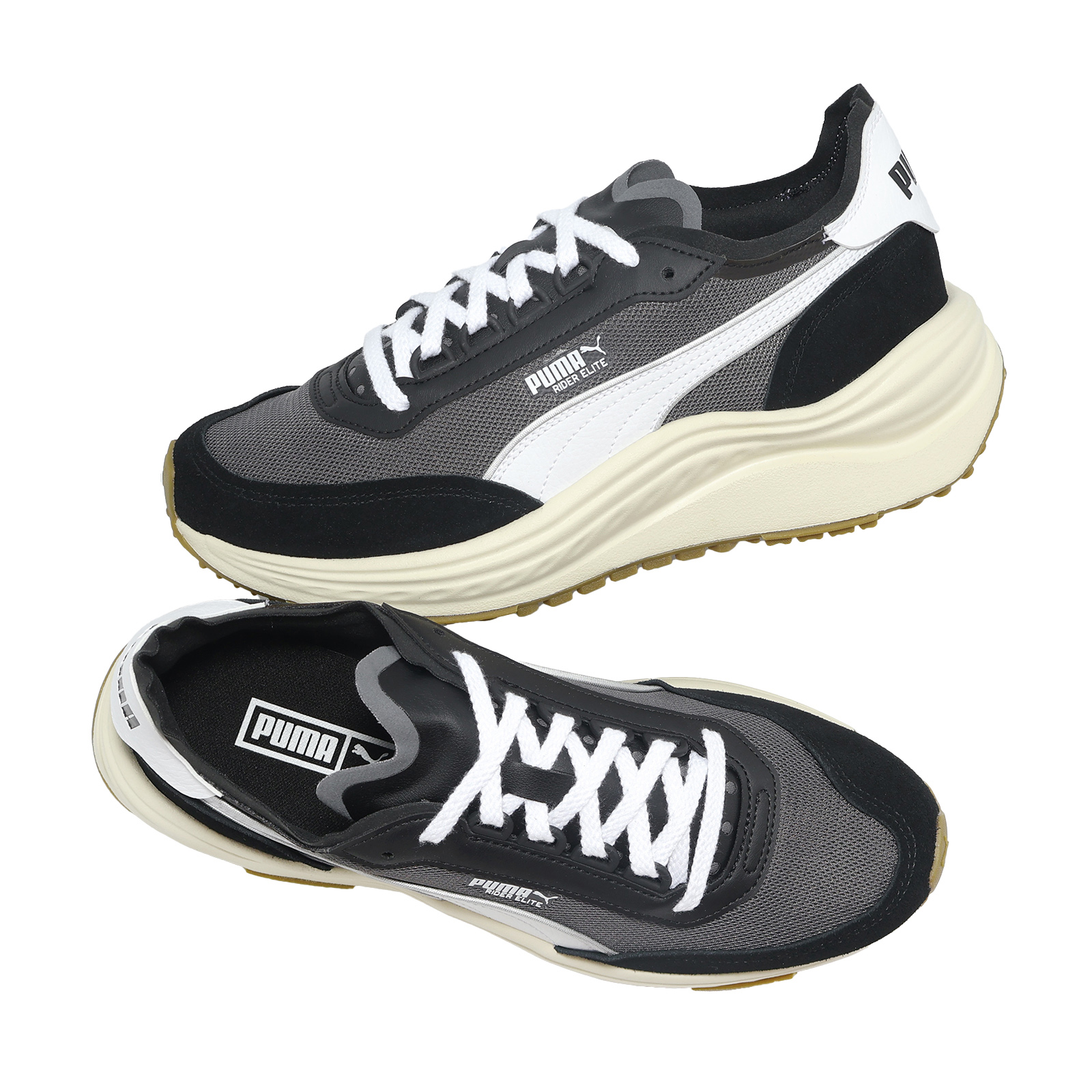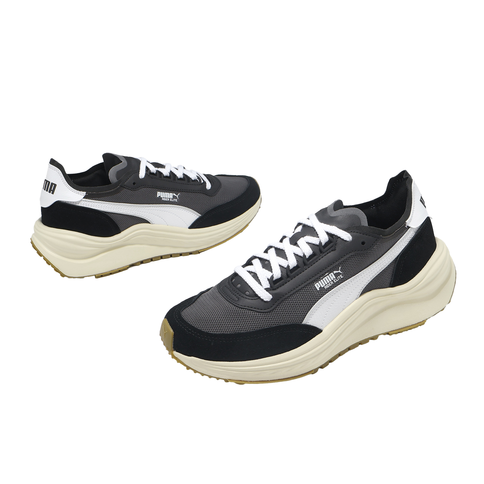 品牌: PUMA型號: 404617-01品名: Rider Elite Retro版型: 腳寬者建議大半號* 鞋面採用合成皮革、麂皮及網布異材質拼接。