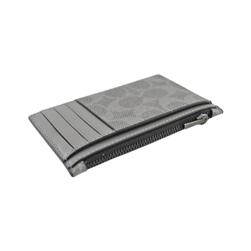 COACH多功能零錢包新色款,經典炭灰色C LOGO PVC拼接灰色素面皮革,外部背面單格開口夾層、四層卡夾,含一拉鍊夾層,可放置零錢,多用途功能,便利攜帶。★尺寸:寬12.5CM(拉鍊開口寬8.5CM)高8CM。★規格:拉鍊開合夾層,背面單格開口夾、四層開放式卡夾