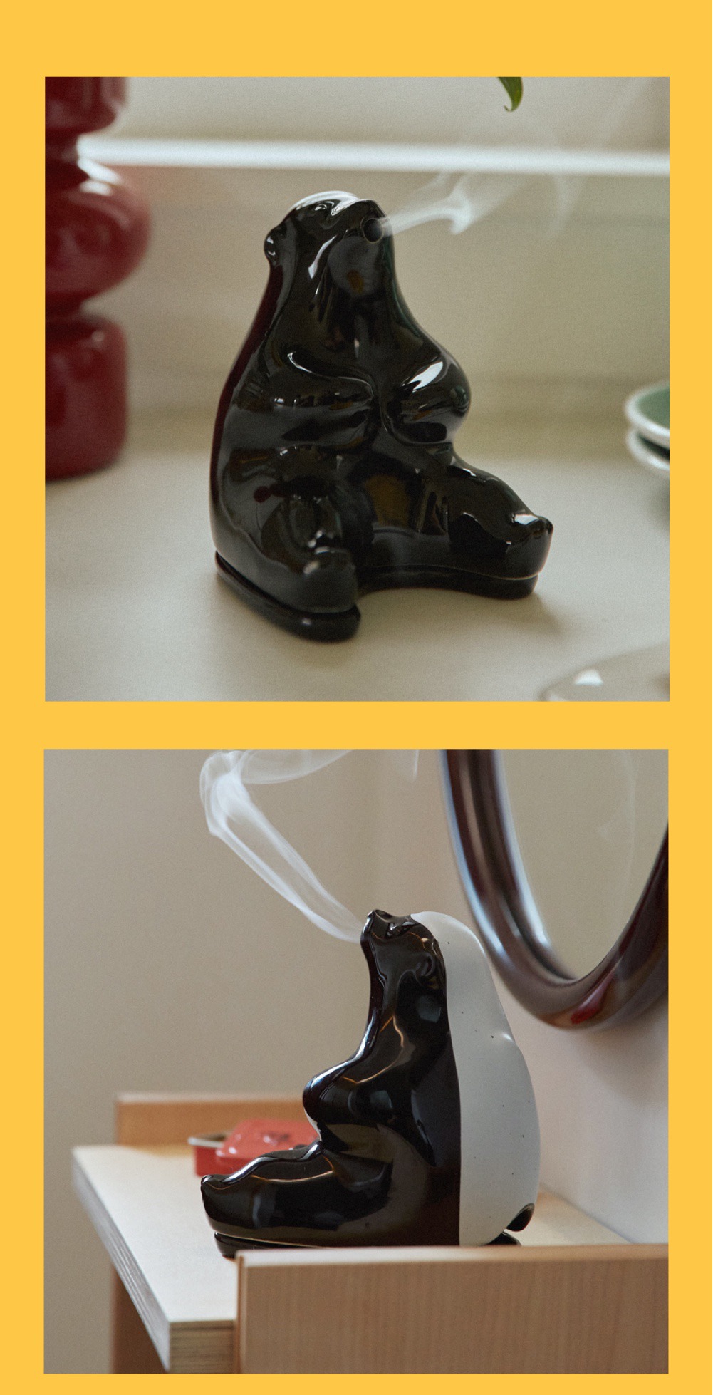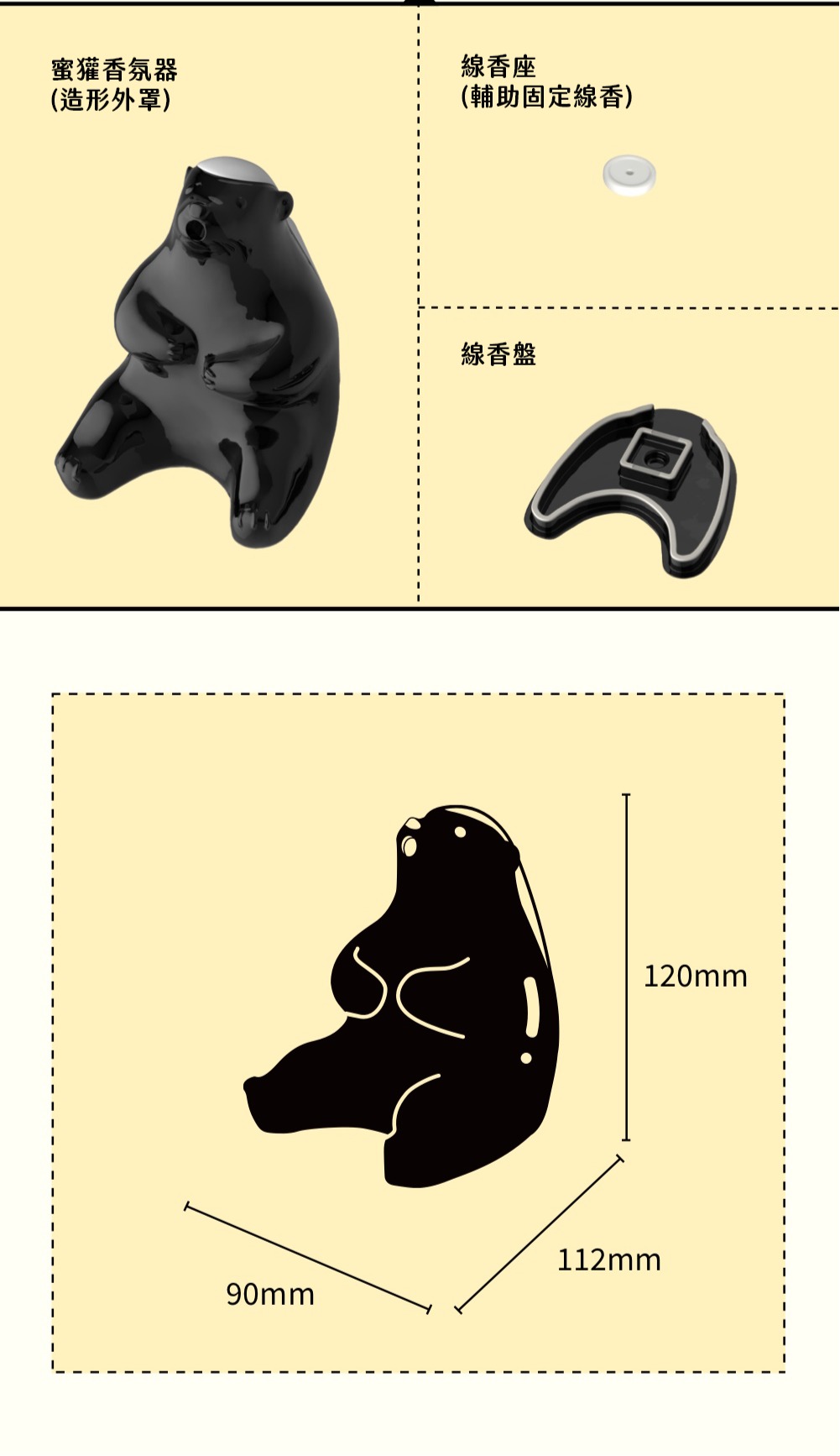 .造型設計:蜜獾香氛器以手工陶器打造,呈現出活潑且具藝術感的蜜獾造型,神情生動,彷彿守護著每一次的香氛儀式。.功能性:設計上不僅考量美學,還具備實用性。香氛器的設計能夠穩固地支撐線香,並有效收集燃燒後的灰燼,保持使用環境的整潔。