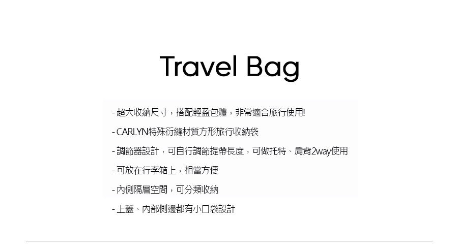 白色情人節送禮首選【CARLYN】TRAVEL BAG收納旅行袋 四色任選 H74120010 生日禮物 | NearMe | 線上送禮平台『獨家支援 收禮者改選禮物』