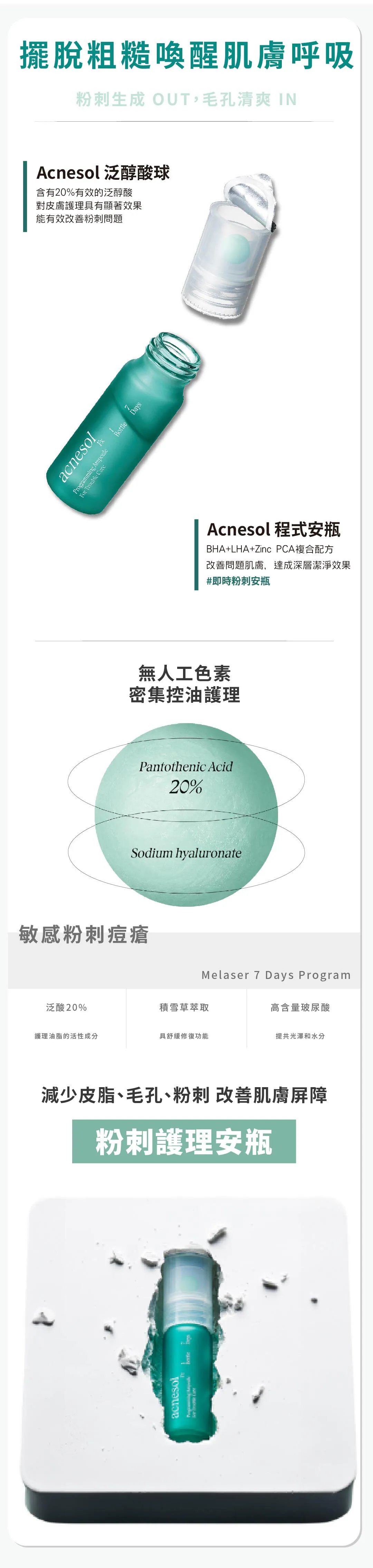 【舒緩增強(藍)】1 含有20%泛醇酸,改善粉刺問題2 敏感肌友善,醫美後修復使用3 強化肌膚屏障含舒緩植萃,鎮靜泛紅、穩定膚況