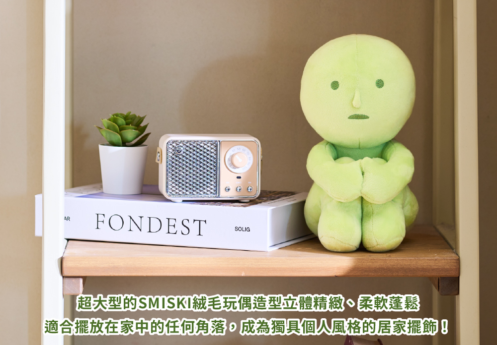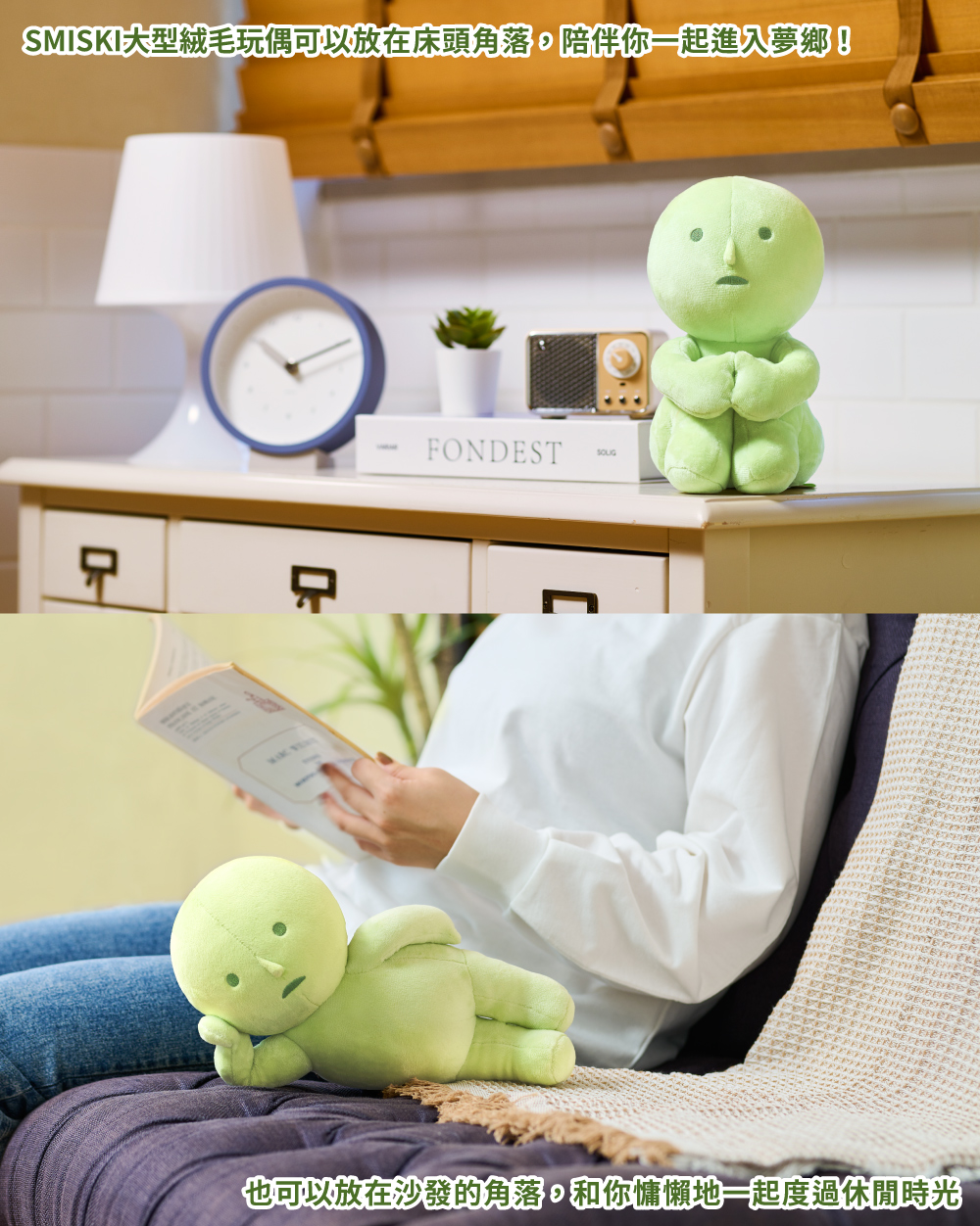本次推出的大型絨毛玩偶共有兩款,以SMISKI經典的孤僻精靈和發懶精靈為設計可以放在沙發的角落,和你慵懶地一起看電視發呆;也可以放在床頭角落,陪伴你一起進入夢鄉!