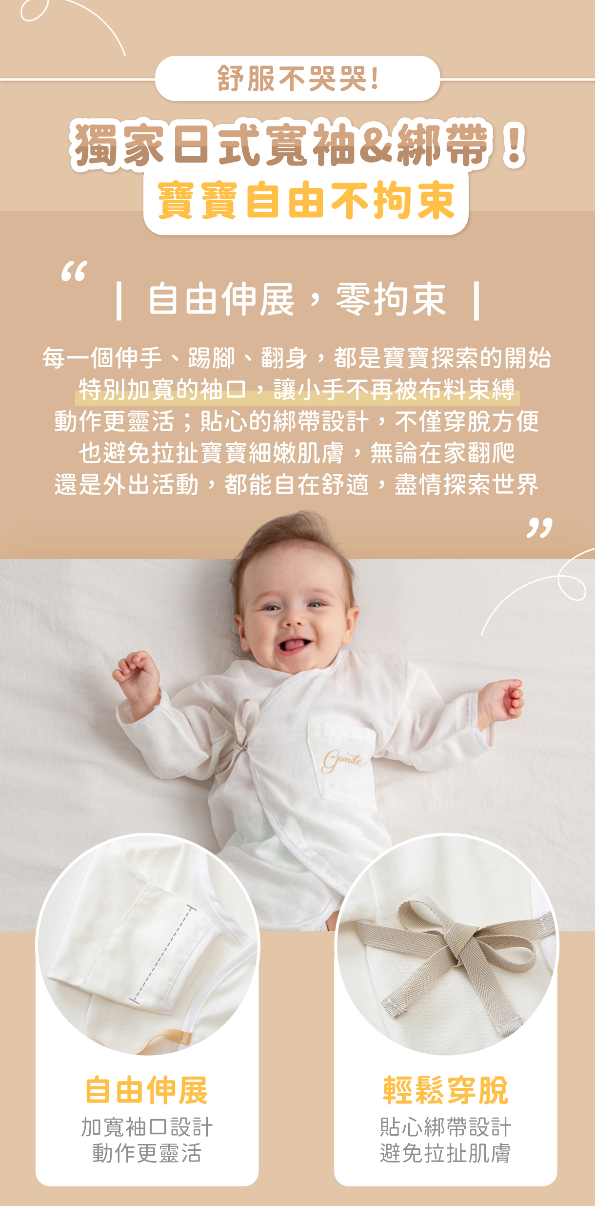 gunite極致棉柔美系列-成長型新生兒紗布衣|S-M號(3M~3Y ) |多款可選