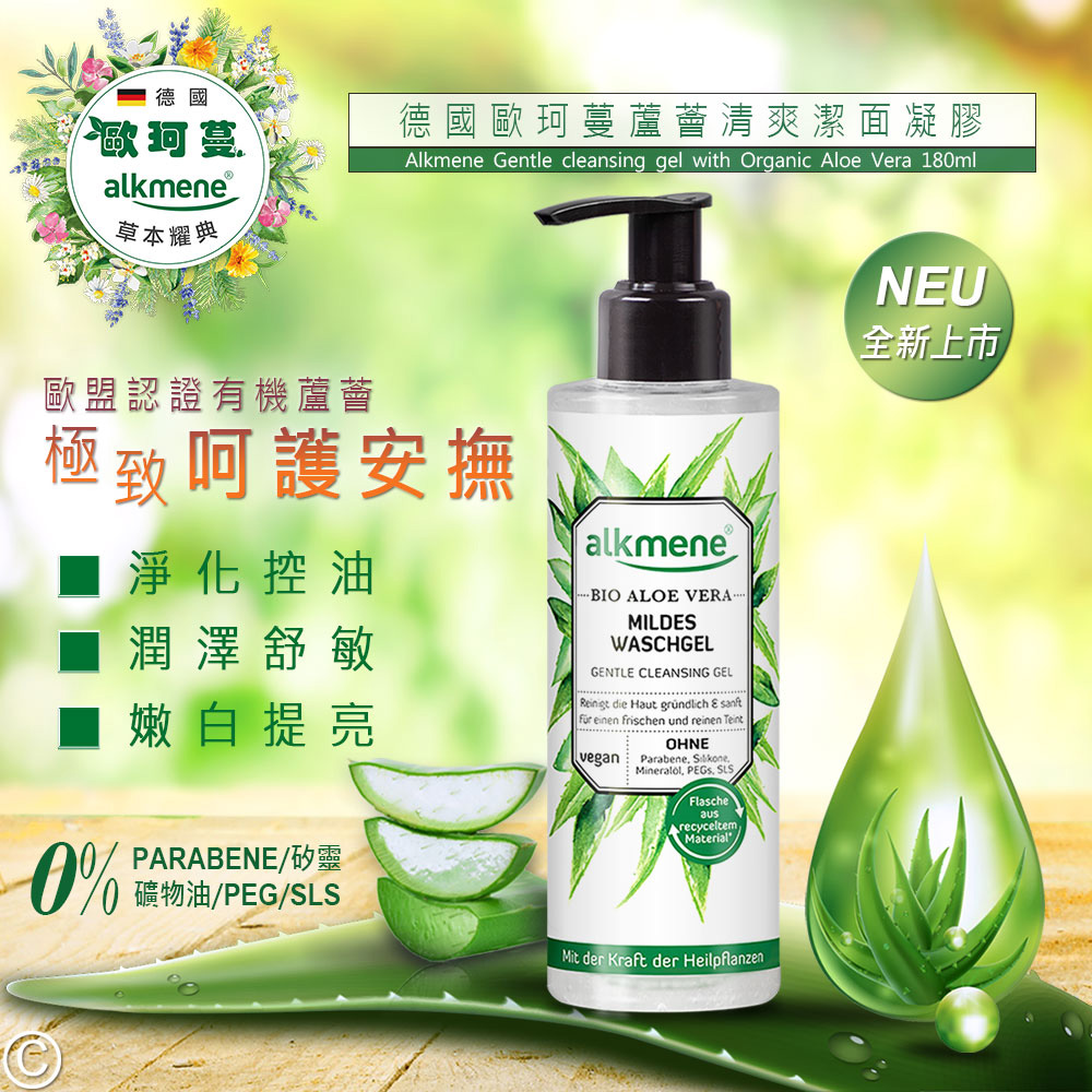 1+1心意加倍【德國alkmene】歐珂蔓蘆薈清爽潔面凝膠180ml(總代理公司貨),共2入