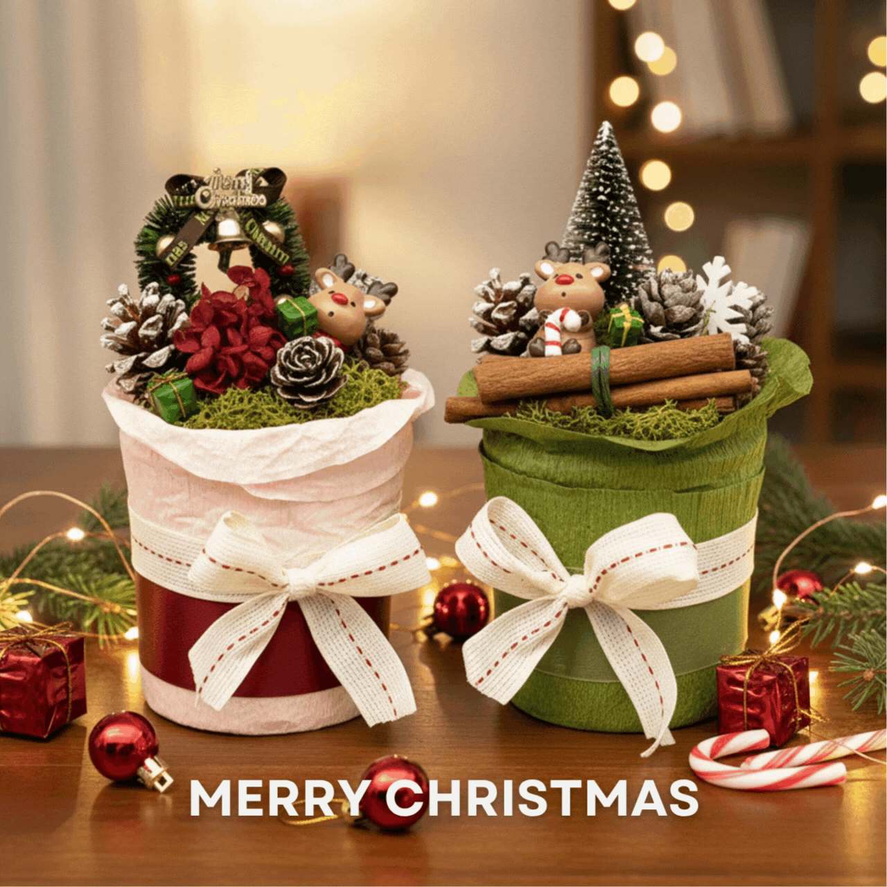 把聖誕的魔法放進小小一盆裡 ✨用麋鹿、花圈、松果打造迷你的節慶角落放在桌上就能瞬間感受到溫暖與幸福🎀