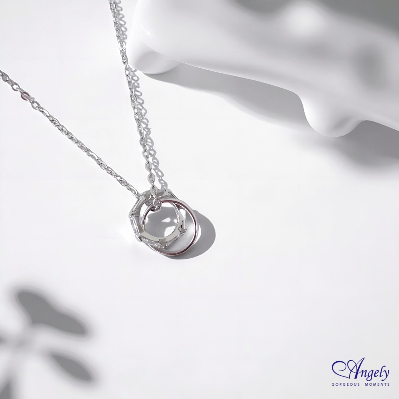 [快速出貨] 【Angely】璀璨雙環・閃耀鋯石項鍊(享盒裝服務)|閃耀 氣質 精緻 生日禮物 情人禮物 女生禮物 女友禮物 禮物推薦 | NearMe | 線上送禮平台『獨家支援 收禮者改選禮物』