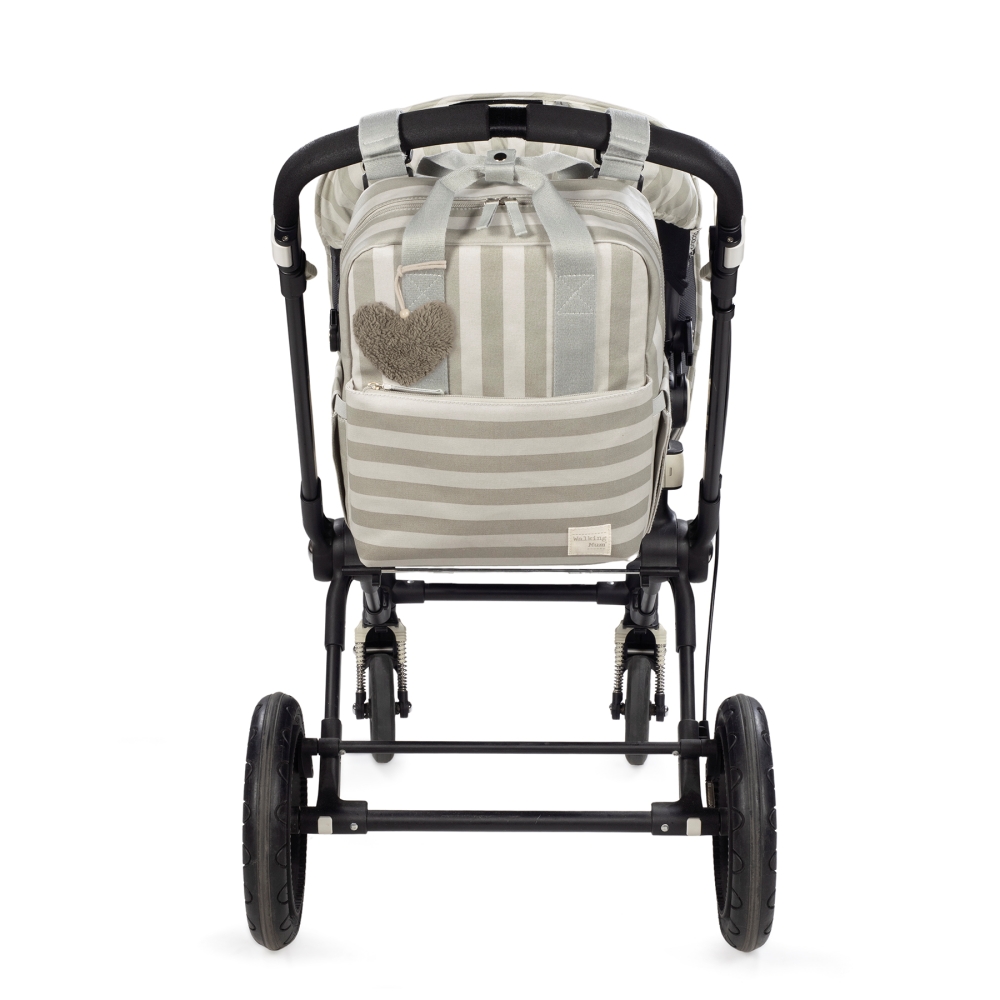 【Walking Mum】防潑水後背媽媽包/森綠條紋