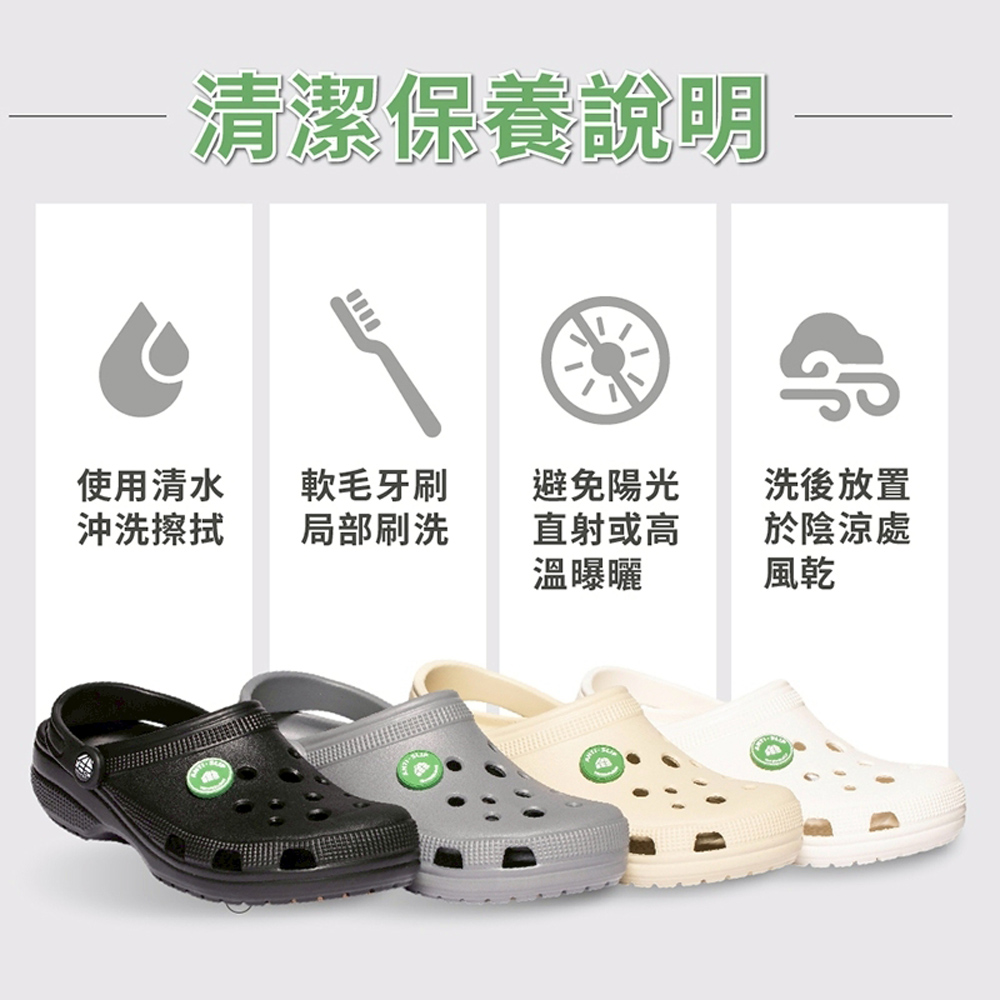 材質 : 鞋身-醋酸乙烯酯共聚物(EVA) 底部止滑底-熱塑性彈性體(TPR) 鞋帶扣環-尼龍/造型扣-聚氯乙烯(PVC)功能 : 防水+防滑產地 : 中國