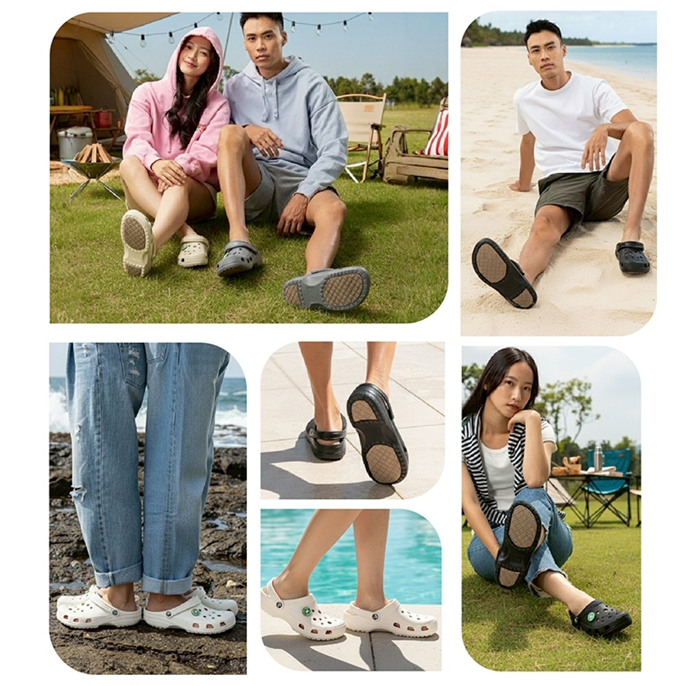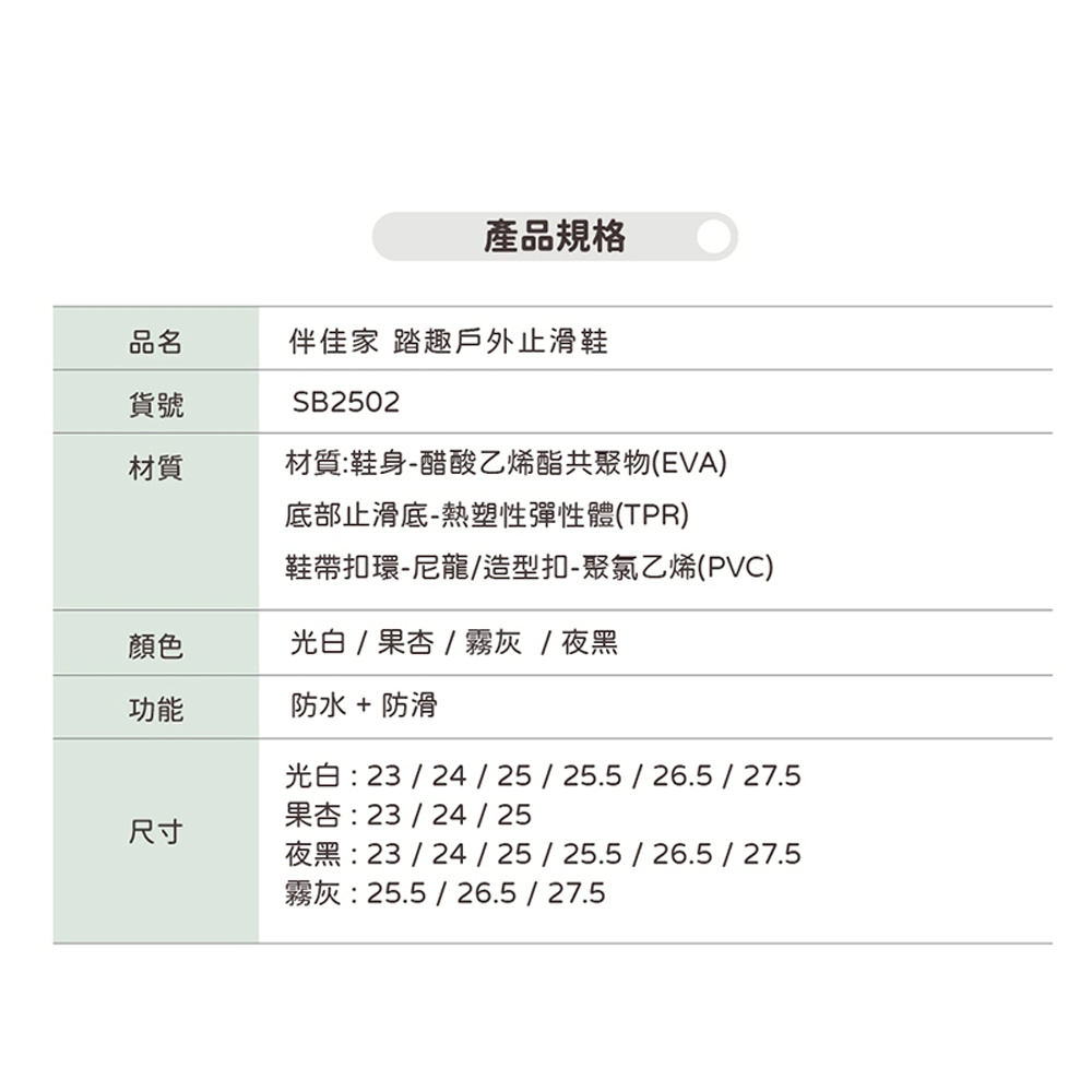 防滑鞋底|特殊貼片設計,雨天防滑鞋首選安全包頭|完整包覆腳趾,戶外露營鞋必備輕量成型|高彈EVA材質,老人防滑鞋推薦快速清洗|沖水即淨快乾,露營海邊都適用足底顆粒|提升摩擦力,行走穩定不易滑動可調後跟|自由切換穿法,防滑拖鞋推薦透氣鞋洞|可搭配鞋扣,乾爽舒適更有型