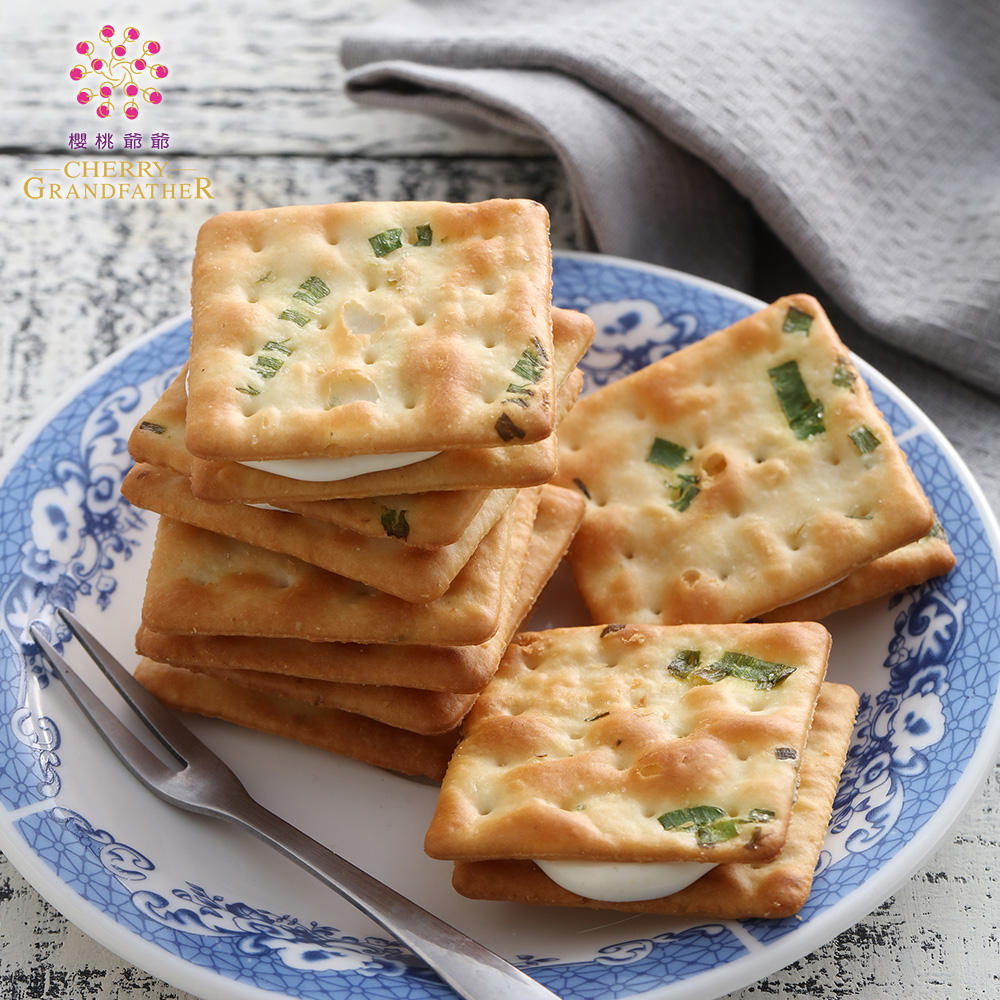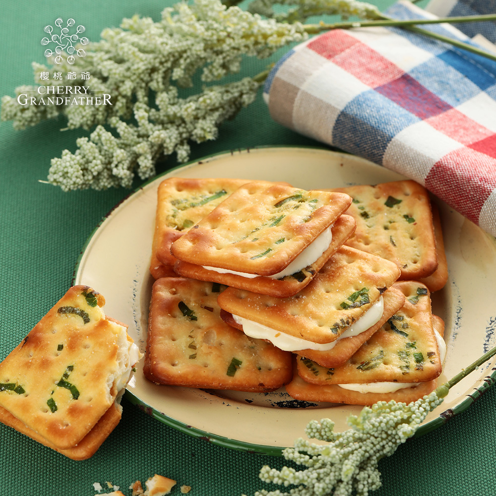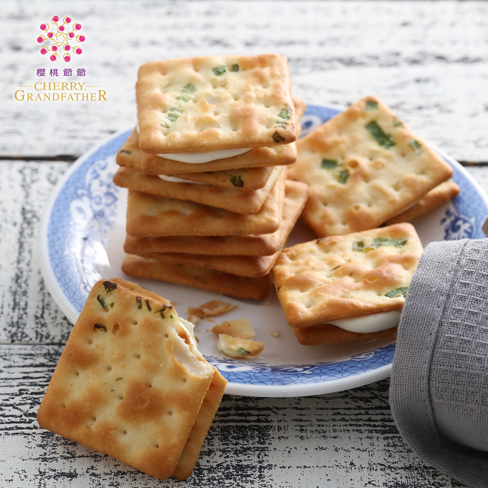 成分 :蔥花餅乾(麵粉、棕櫚油、青蔥、食鹽、酵母、小蘇打粉[碳酸氫鈉])、麥芽糖、海藻糖、紐西蘭高級奶粉、進口奶油、砂糖、蛋白、玉米糖膠、鹽