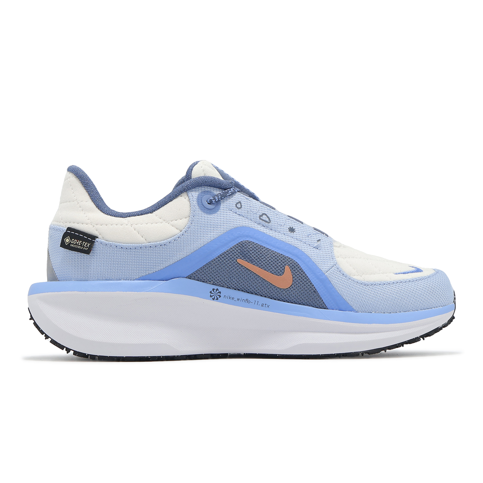品牌: NIKE型號: FQ1359-002品名: Wmns Air Winflo 11 GTX版型: 腳寬者建議大半號* Air Winflo 11 比前代設計,在前足空間加大,鞋跟加寬,透氣性也有所提升。