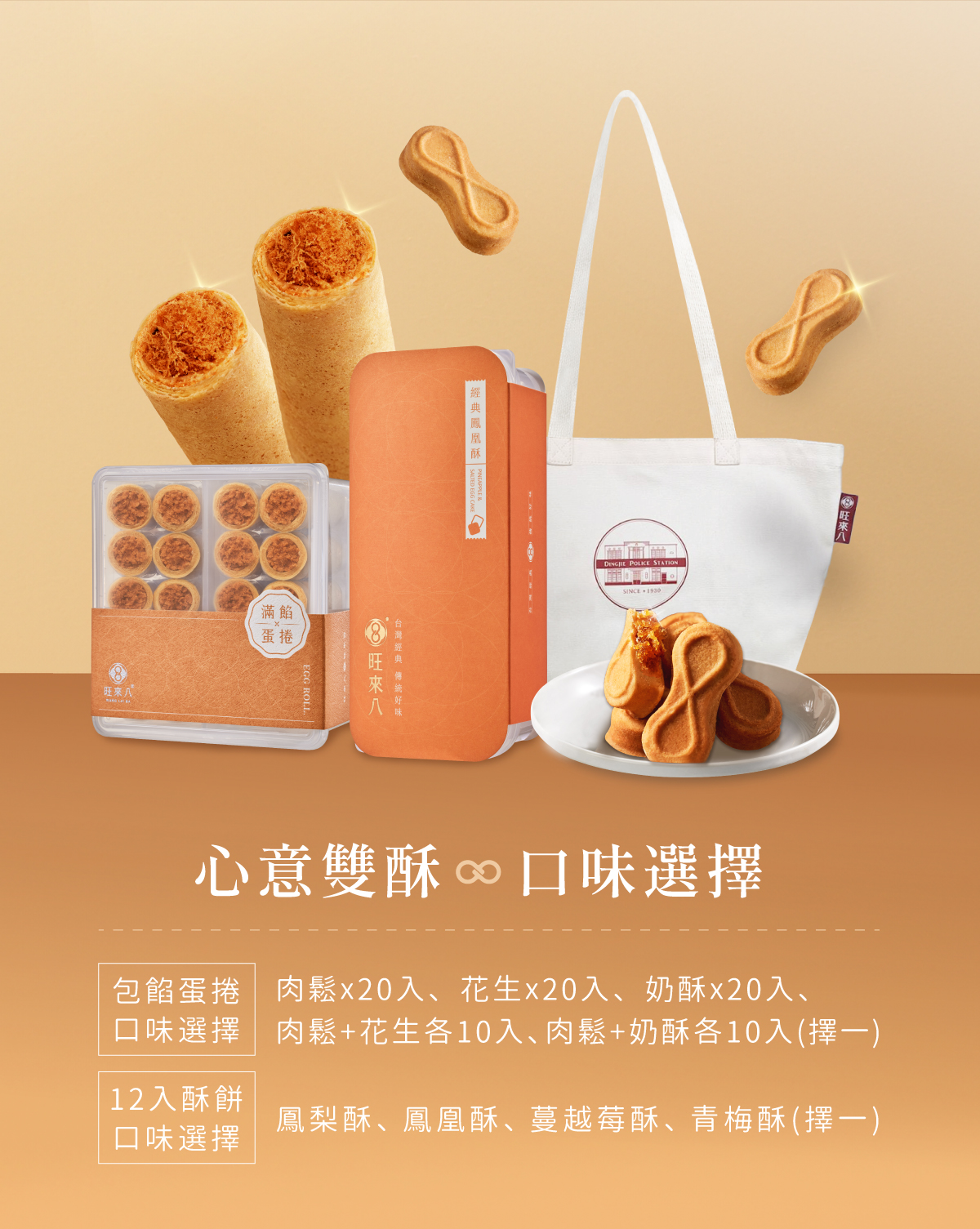 ・名稱:心意雙酥組(滿餡蛋捲20入+鳳梨酥12入)附品牌帆布袋