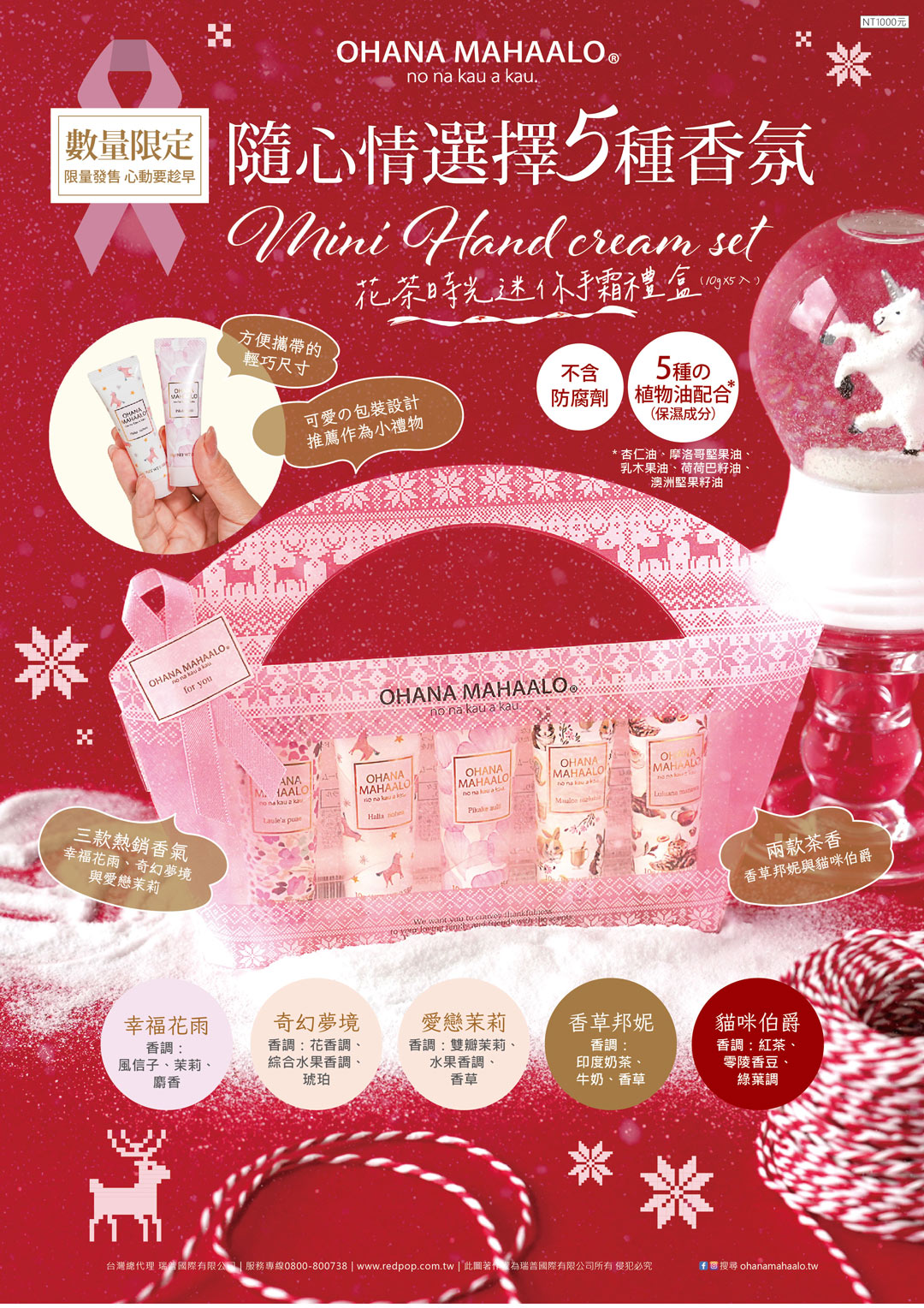 ◆商品名稱:【數量限定🎅預購中】OHANA MAHAALO 花茶時光迷你手霜禮盒(10gx5入) |聖誕交換禮物首選