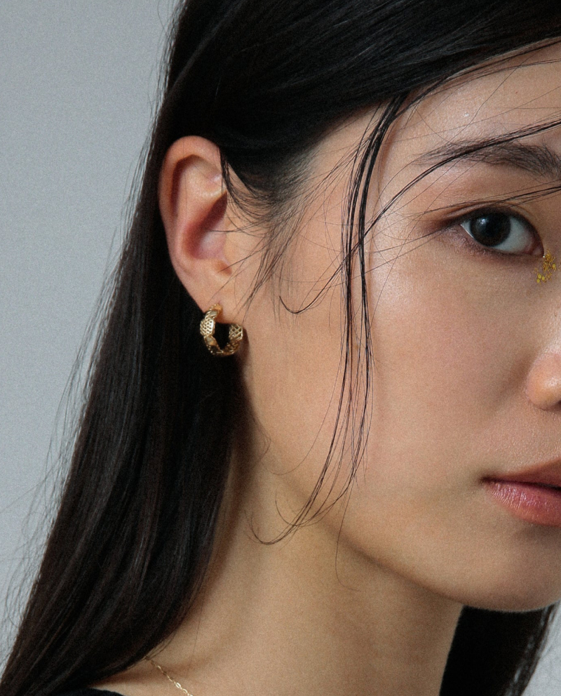 Bamboo 系列靈感來自越南傳統竹編工藝,並以高聳的歷史建築為意象,將工藝之美轉化為現代感的立體設計-純金耳環中央嵌入細膩的竹編圖樣,簡約中點綴一抹精緻巧思。外圈邊緣則融入品牌名稱所象徵的「X」元素,呼應品牌精神-背面同樣以 XOZ 獨有工藝施加竹編紋理,不僅增添細節美感,更帶來輕盈舒適的配戴體驗,即使長時間配戴也不易疲憊------------------------------