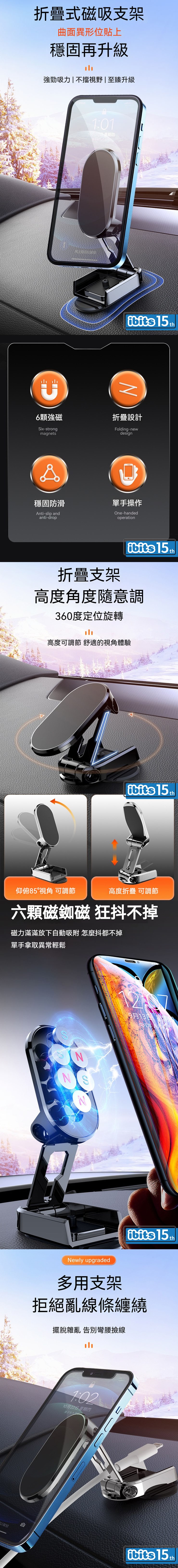折疊式磁吸支架 曲面異形位貼上強勁吸力,不擋視野,至臻升級