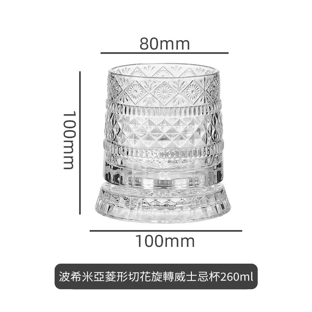 以細膩浮雕紋路打造的水晶威士忌杯,杯底特別設計旋轉結構,輕觸桌面即可優雅轉動,展現如陀螺般的律動光影。酒液在杯壁折射出迷人的琥珀色光芒,搭配精工浮雕的觸感,讓每一次品飲都成為視覺與感官的風格儀式。