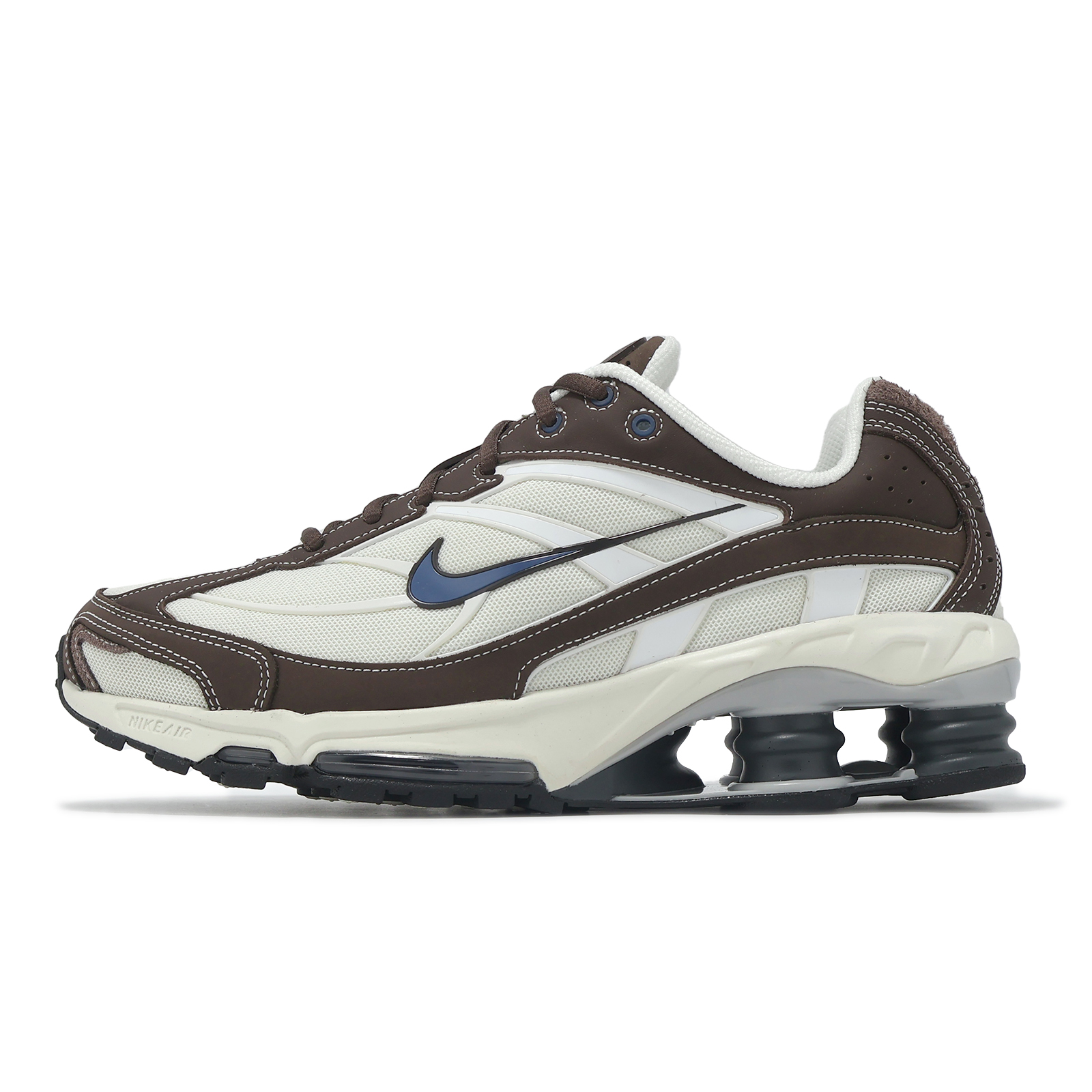 * 中底 Shox 技術及後腳跟 TPU 設計,提供腳掌足夠支撐與緩衝效果,並呈現未來感十足造型。
