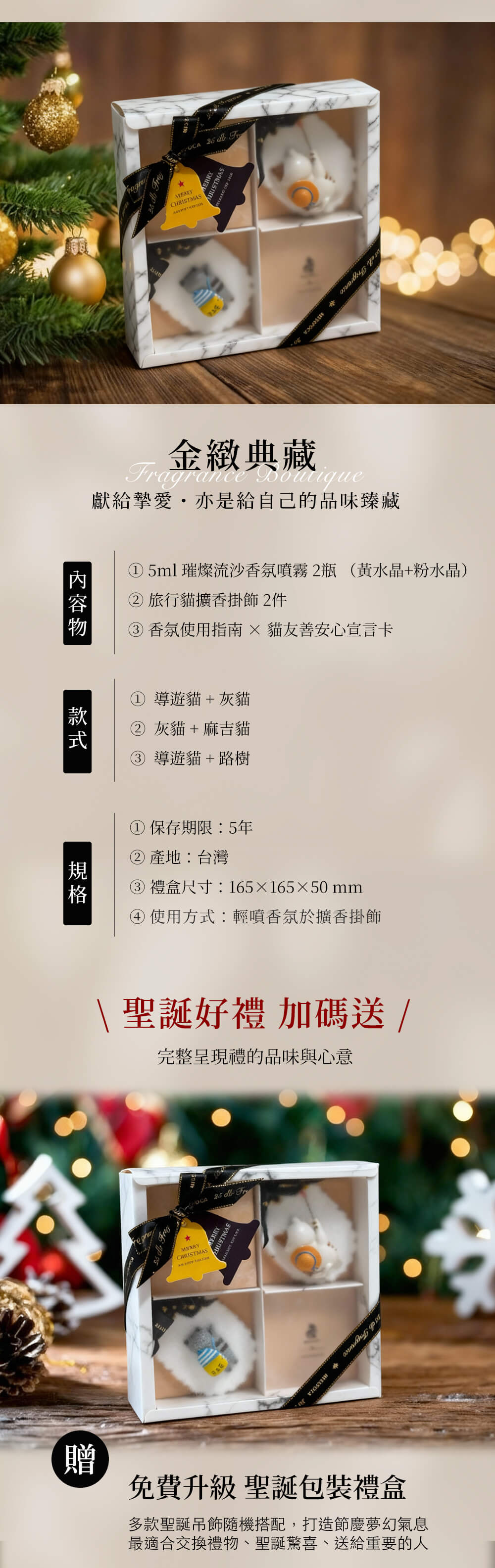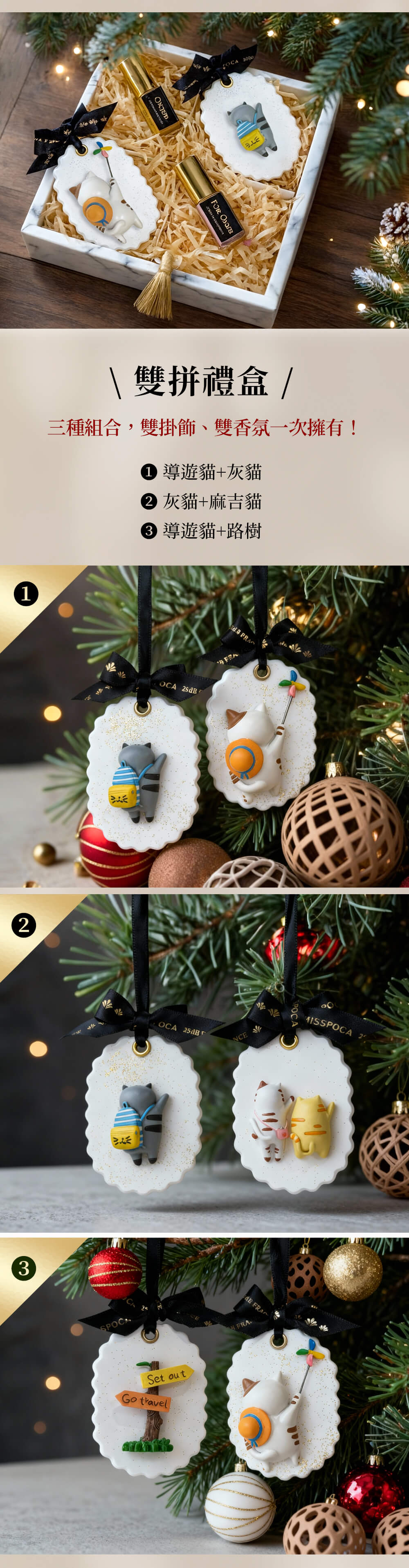🚛 快速出貨【聖誕水晶香氛禮盒】旅行貓2擴香掛飾x2水晶香氛 🌲 實用聖誕交換禮物・贈卡片/提袋【MISSPOCA】寵物友善 零酒精 室內香氛 家飾佈置 精油助眠香氛禮盒