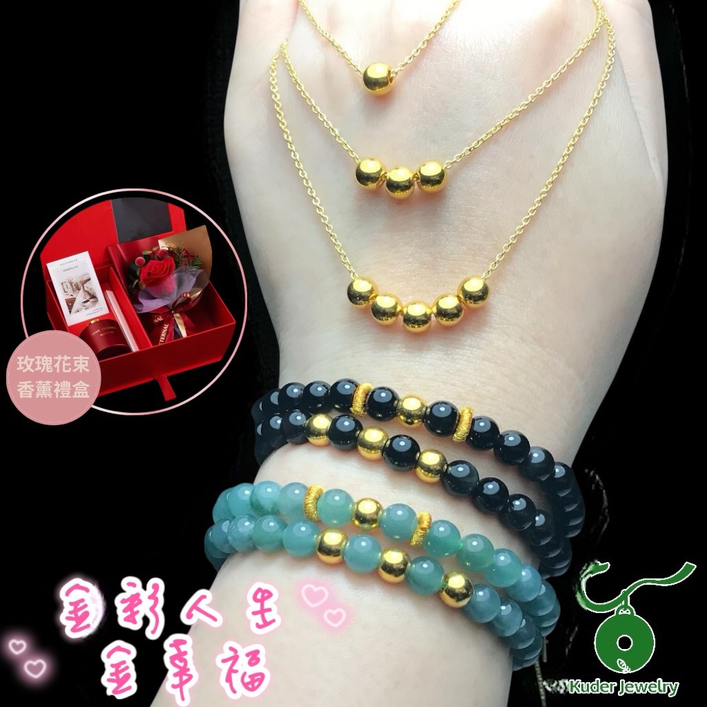 [快速出貨]【Kuder Jewelry】金彩人生~1+1系列6mm黃金金珠項鍊手鍊任選款『LINE禮物獨家組合』買黃金項鍊送盛世玫瑰花束香氛大禮盒一件