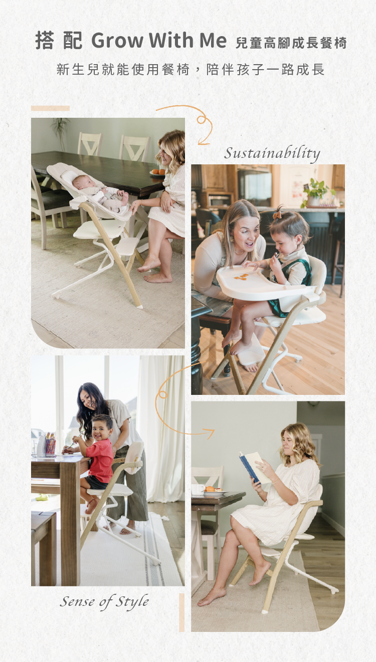 結合使用,即可從新生兒一路用到80公斤 ( Grow With Me 兒童高腳成長餐椅介紹請點我)