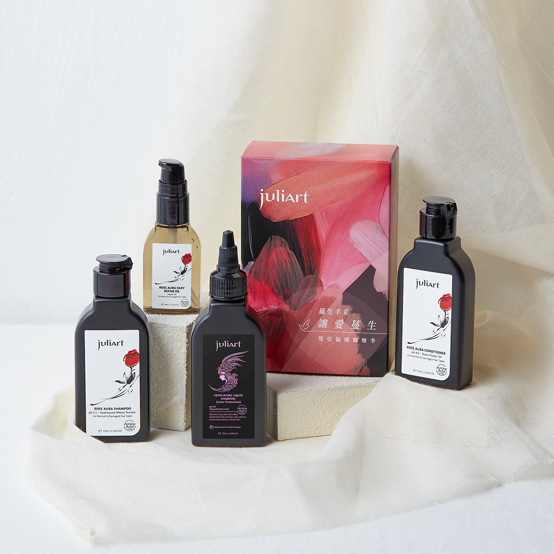 甘草次酸角質淨化液 (護色版) 75mL洸影玫瑰洗髮精 75mL洸影玫瑰潤髮乳 75mL洸影玫瑰精粹髮油 30mL