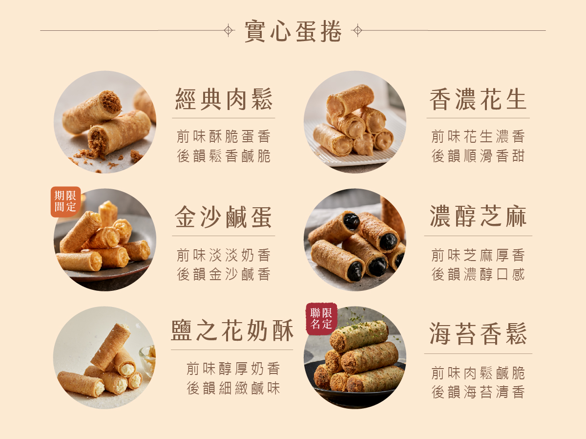 ・規格:粹蛋捲32入x1+實心蛋捲4入x2