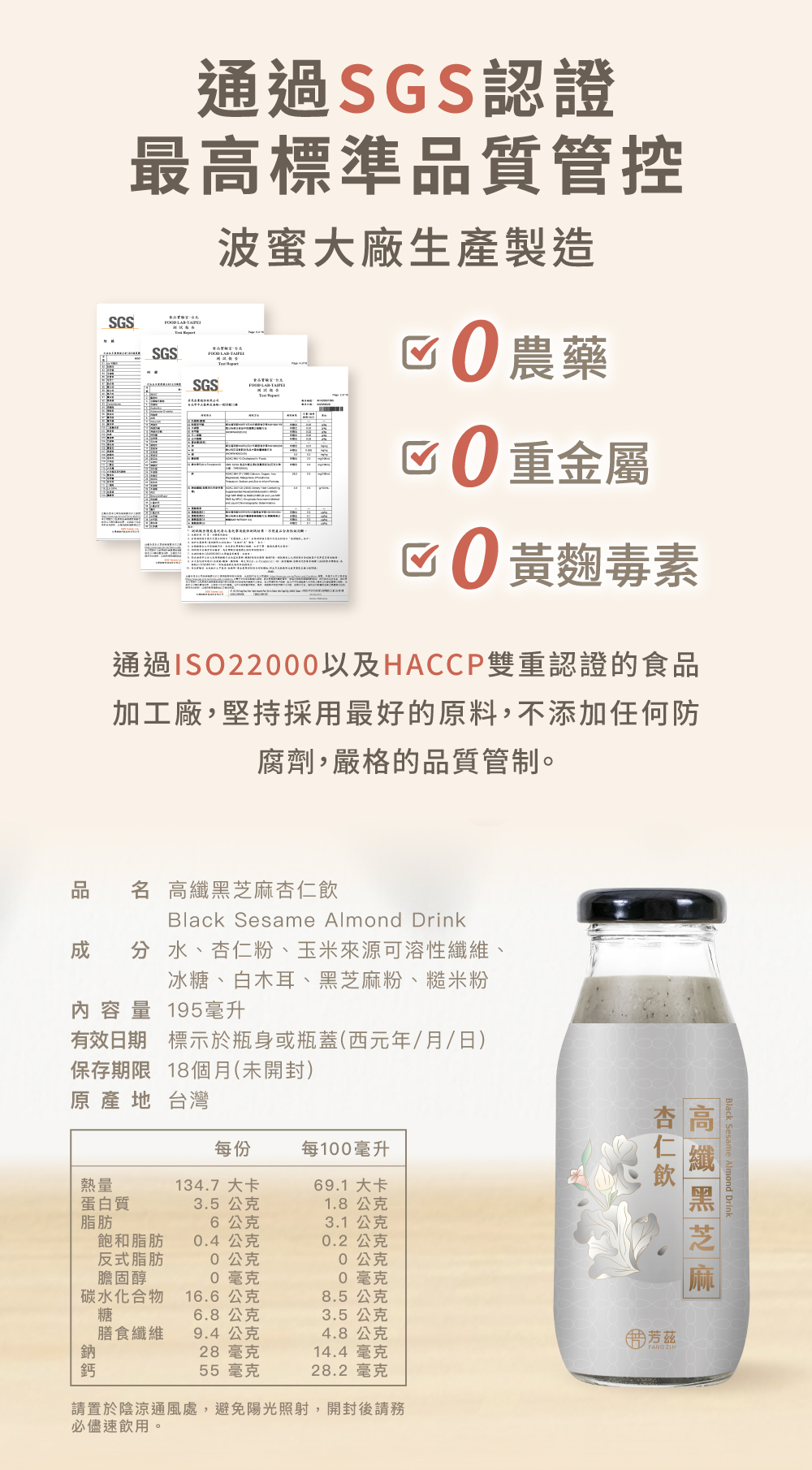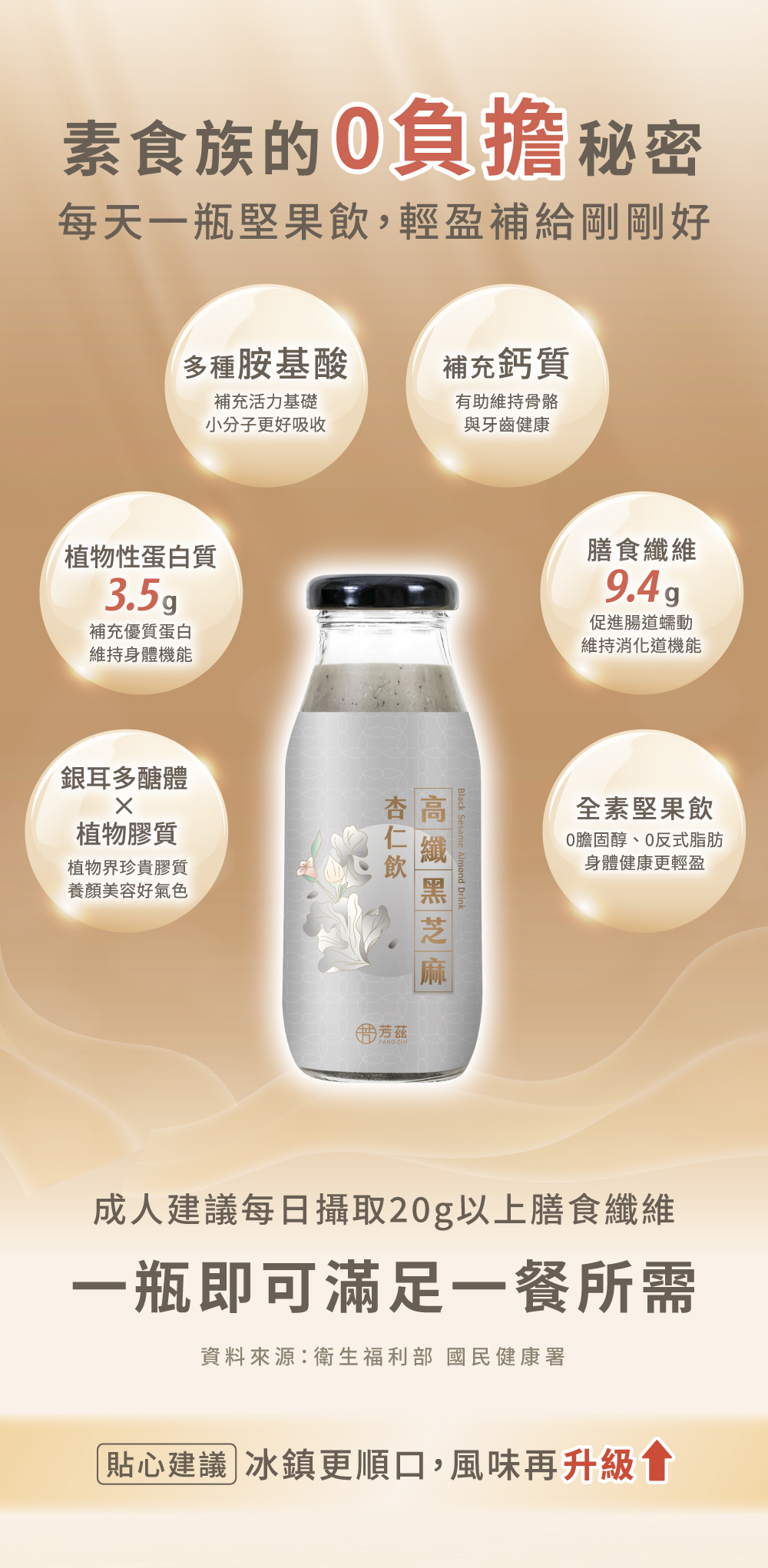 名稱:高纖黑芝麻杏仁飲(全素)彩盒款6瓶/盒