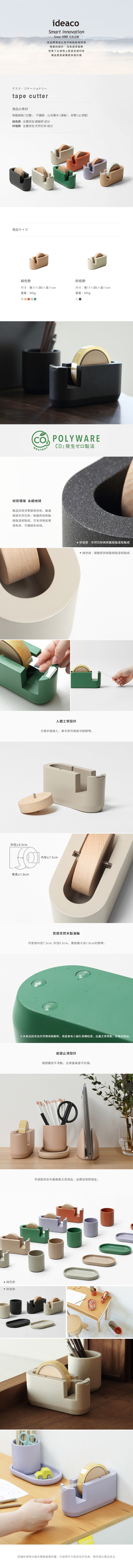 尺寸:(約)W170×D60×H110mm材質:[主體]碳酸鈣、聚酯樹脂、[滾軸]不鏽鋼、山毛櫸木、[防滑墊]矽膠重量:945g耐熱:100℃ 產地:日本授權中國製造適用膠帶尺寸:[內徑]75mm、[外徑]95mm、[寬度]18mm以內※尺寸皆為人工測量,誤差±0.2cm屬正常範圍。