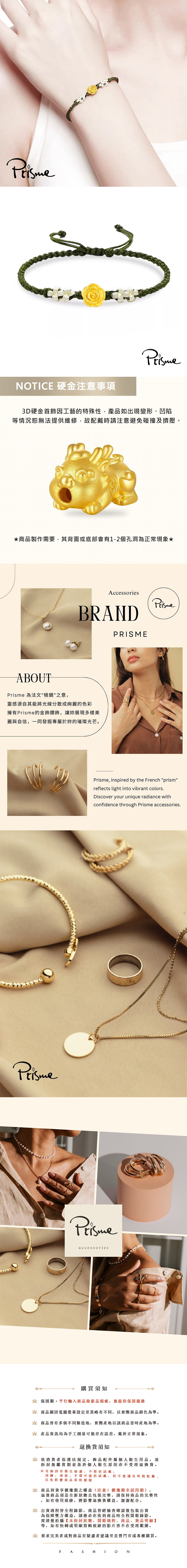 ◆商品內容品牌 Prisme Gold款式 手鍊重量 金重:約0.05錢±0.02材質說明 墜飾:999純金|手鍊:繩編織商品尺寸 墜飾:寬約0.9cm|鍊長:約17-24cm商品包裝配件 手鍊、保證書、精美禮盒