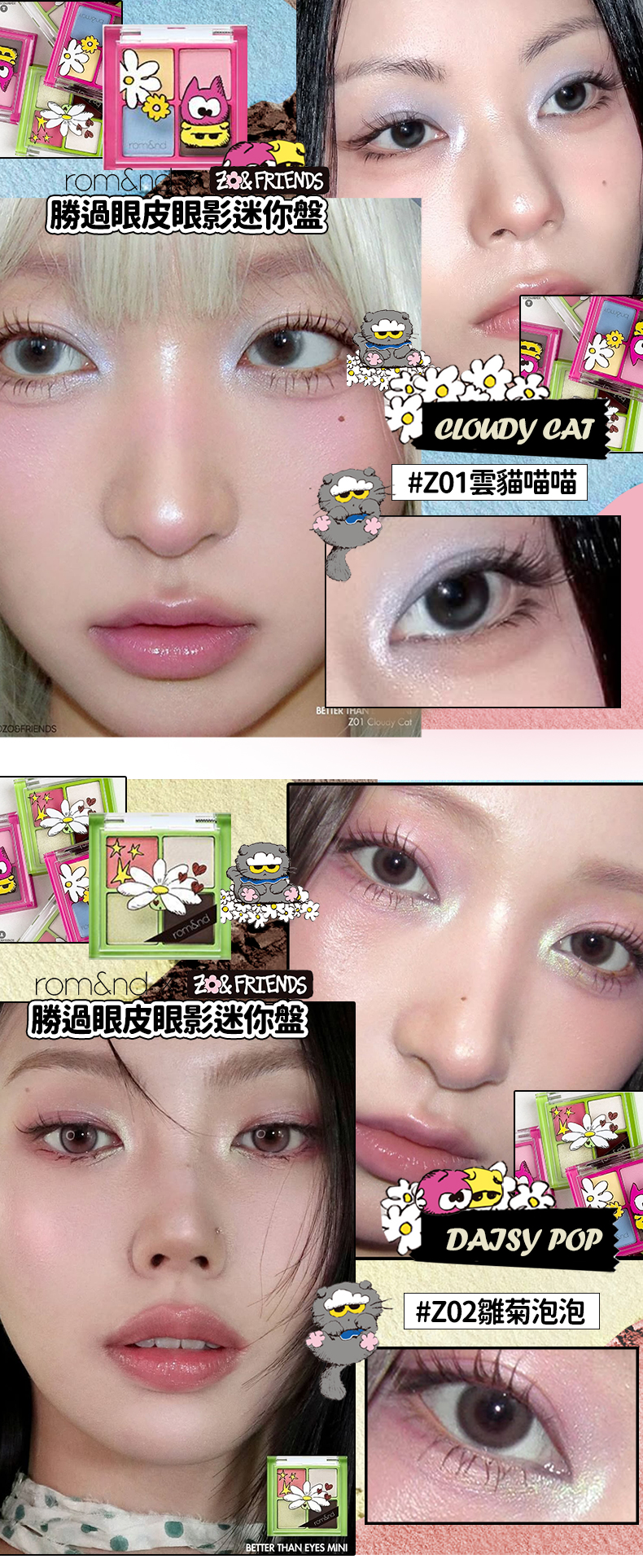 產品名稱:Rom&nd × ZO&FRIENDS 聯名限定彩妝系列 勝過眼皮迷你眼影盤