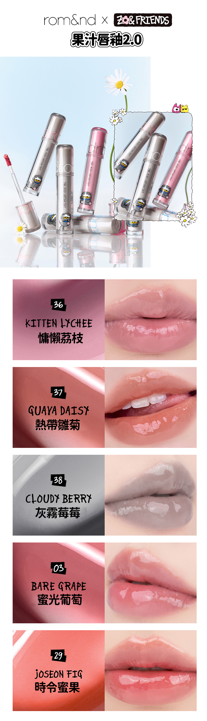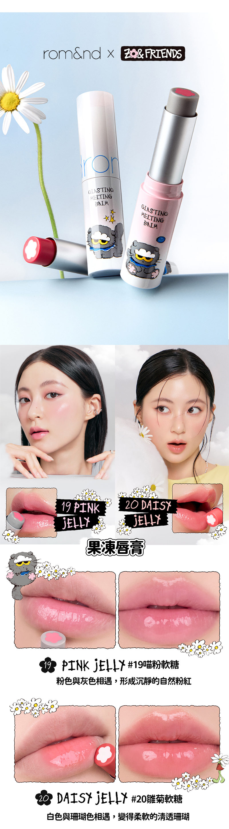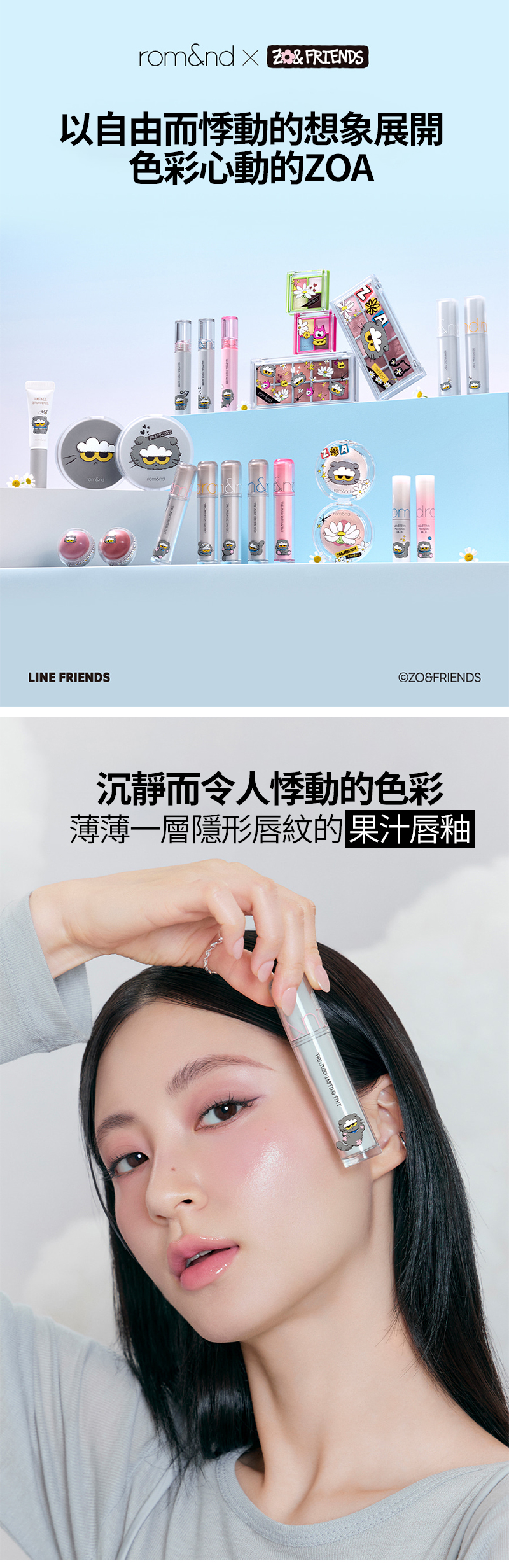 質地包含 水光、果凍、霧面、珠光 等多樣選擇,從日常淡妝到重點妝容都能輕鬆駕馭。無論是 ZOA 的手繪風貼紙、角色主題包裝,或是彩妝本身的實用度,都讓這次聯名具備高度收藏性與話題性。