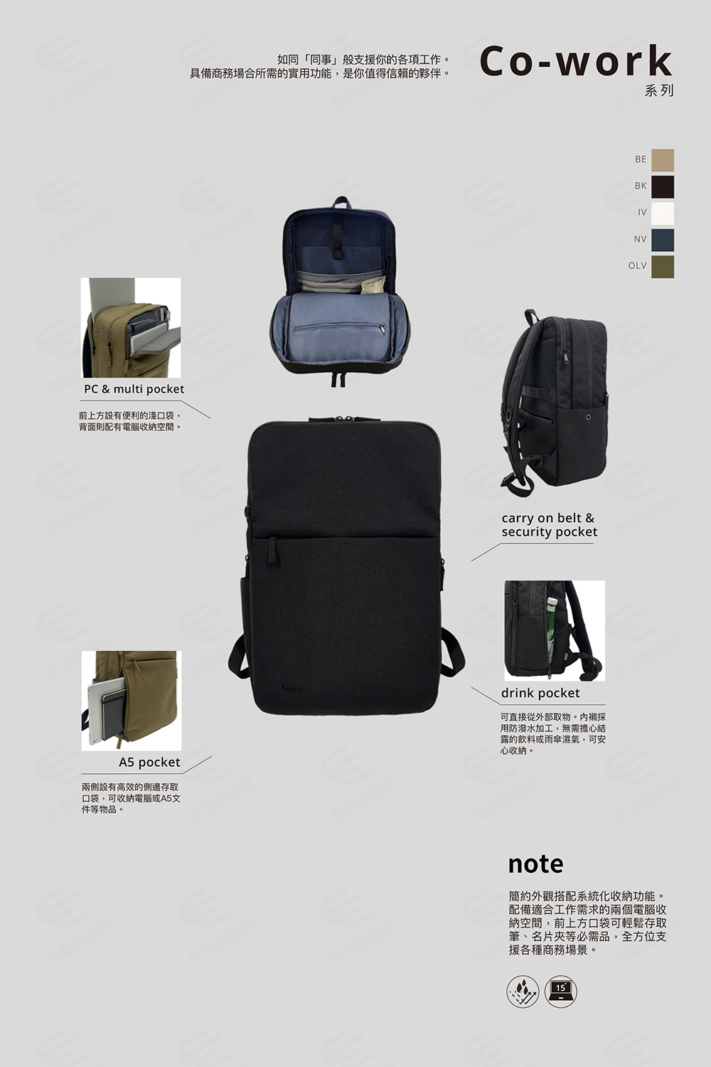 系統化的收納功能空間可入兩組電腦輕量材質具防潑水時尚設計多色可選