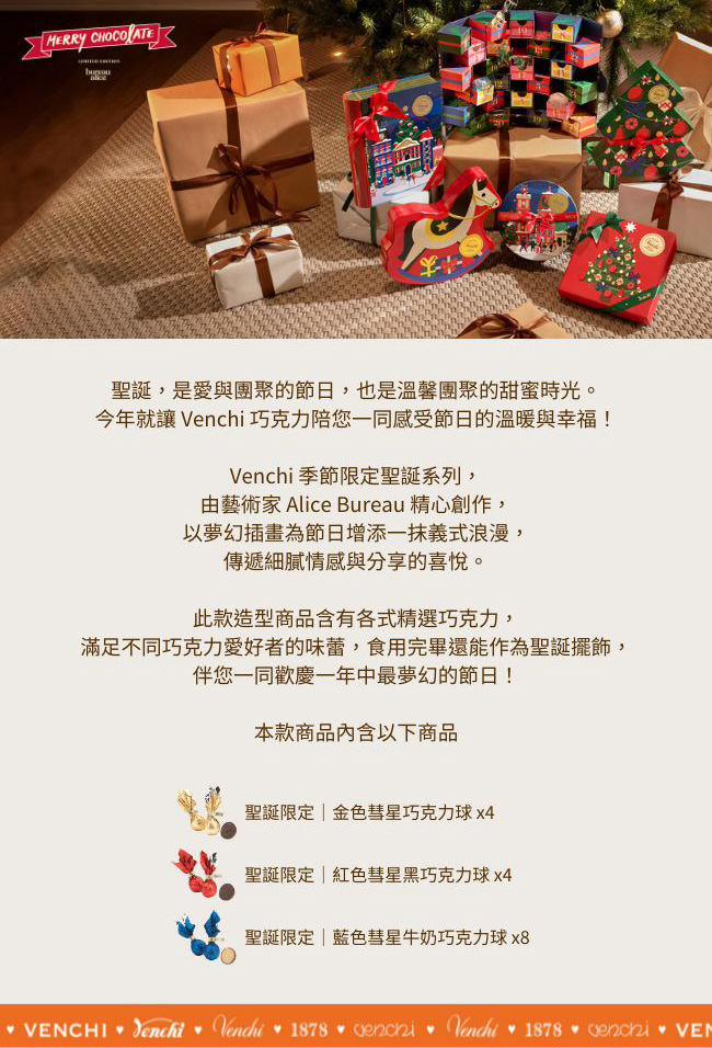 聖誕,是愛與團聚的節日,也是溫馨團聚的甜蜜時光。今年就讓 Venchi 巧克力陪您一同感受節日的溫暖與幸福!