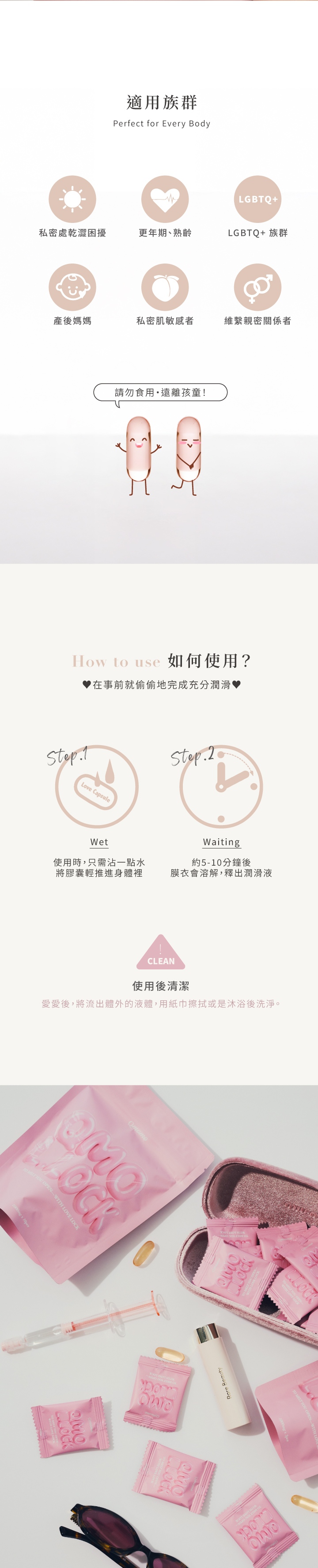 本產品為女性私密潤滑用途,非避孕用品,亦不含殺精成分(Spermicides、Nonoxynol-9)。請採取適當避孕措施。
