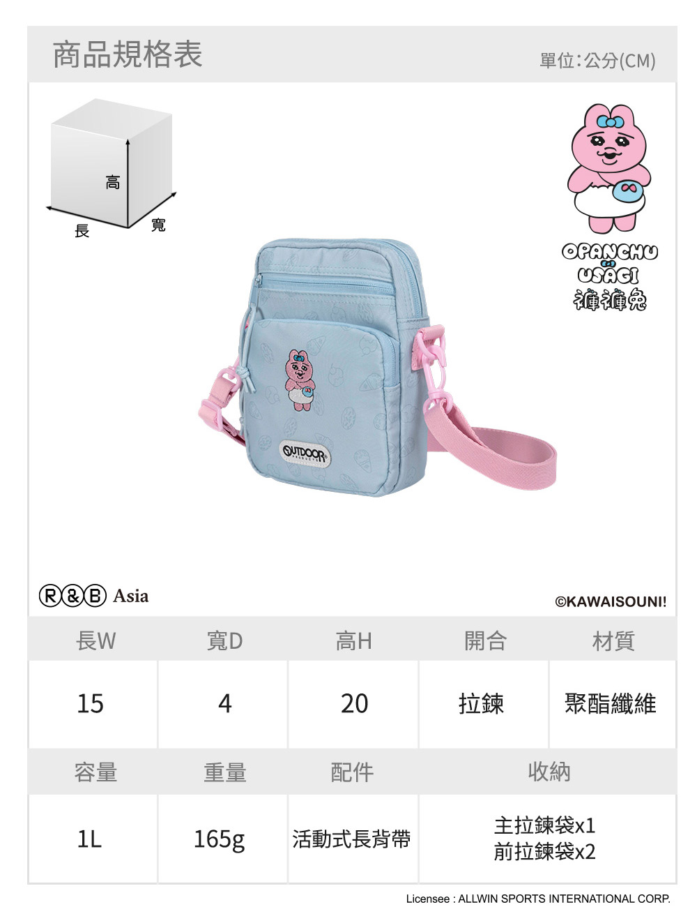 超人氣療癒系角色登場!OUTDOOR PRODUCTS攜手「Opanchu Usagi褲褲兔」推出限定包款,將可愛表情融入細節設計,充滿反差萌魅力。採高密度聚酯纖維材質,輕盈防潑水又耐用,粉嫩配色吸睛滿分,陪你開啟充滿笑意的療癒日常!
