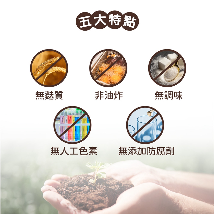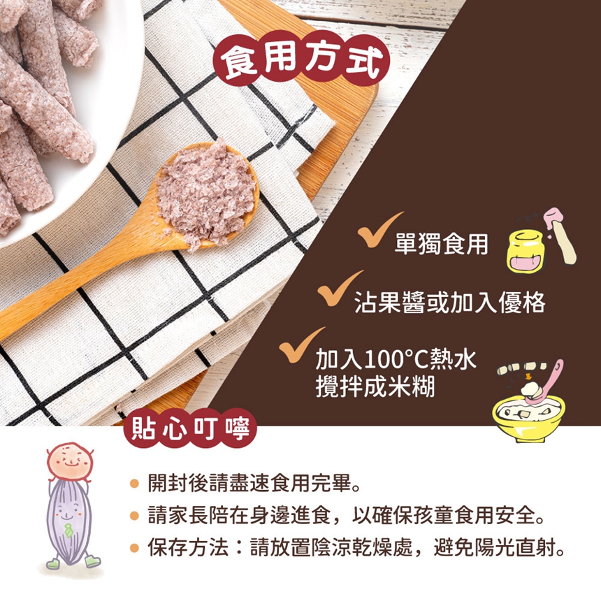 ✔ 天然無添加 × 原型食材營養無麩質、非油炸、無調味、無人工色素、防腐劑,保留食材天然風味,適合 6 個月以上寶寶練習抓握與磨牙。