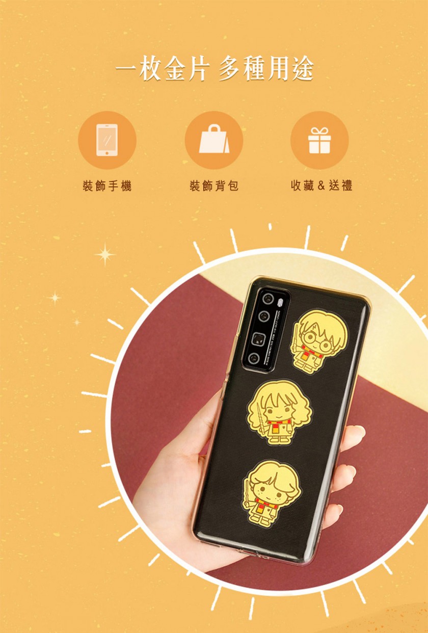 以哈利波特主角為原型設計,精緻呈現個人特色的圓形眼鏡、格蘭芬多圍巾及閃電,展現善良和勇敢特質。