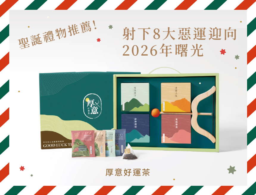 這款「厚意好運茶」用 射下8大惡運、迎向2026曙光 做成超有梗的祝福禮,把「願你明年順順利利、壞事退散」用一杯茶說出口。
