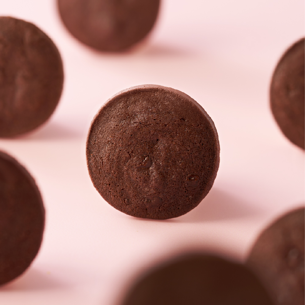 朱古力曲奇選用法國Extra Rouge可可粉,混入比利時黑巧克力豆。曲奇甘香鬆酥,黑巧克力豆卻像奶油般柔滑,突顯了可可堅果香氣以及巧克力特有的苦香,濃香誘人。