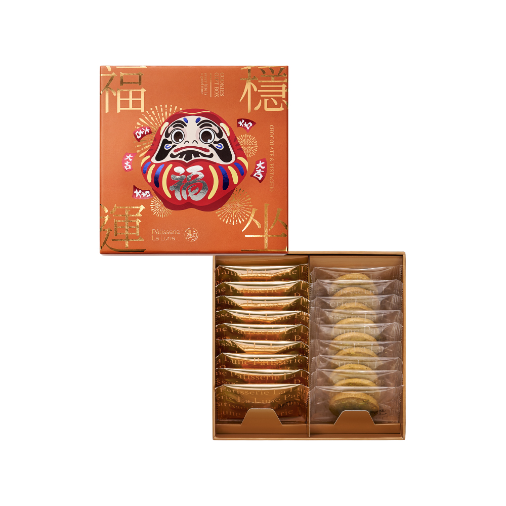 數量/包裝/淨重:→ 朱古力曲奇 9 件;每件獨立包裝;約 72 克;→ 開心果曲奇 9 件;每件獨立包裝;約 72 克;總淨重:→ 約 144克禮盒尺寸:190(W) x 190(D) x 52(H) mm