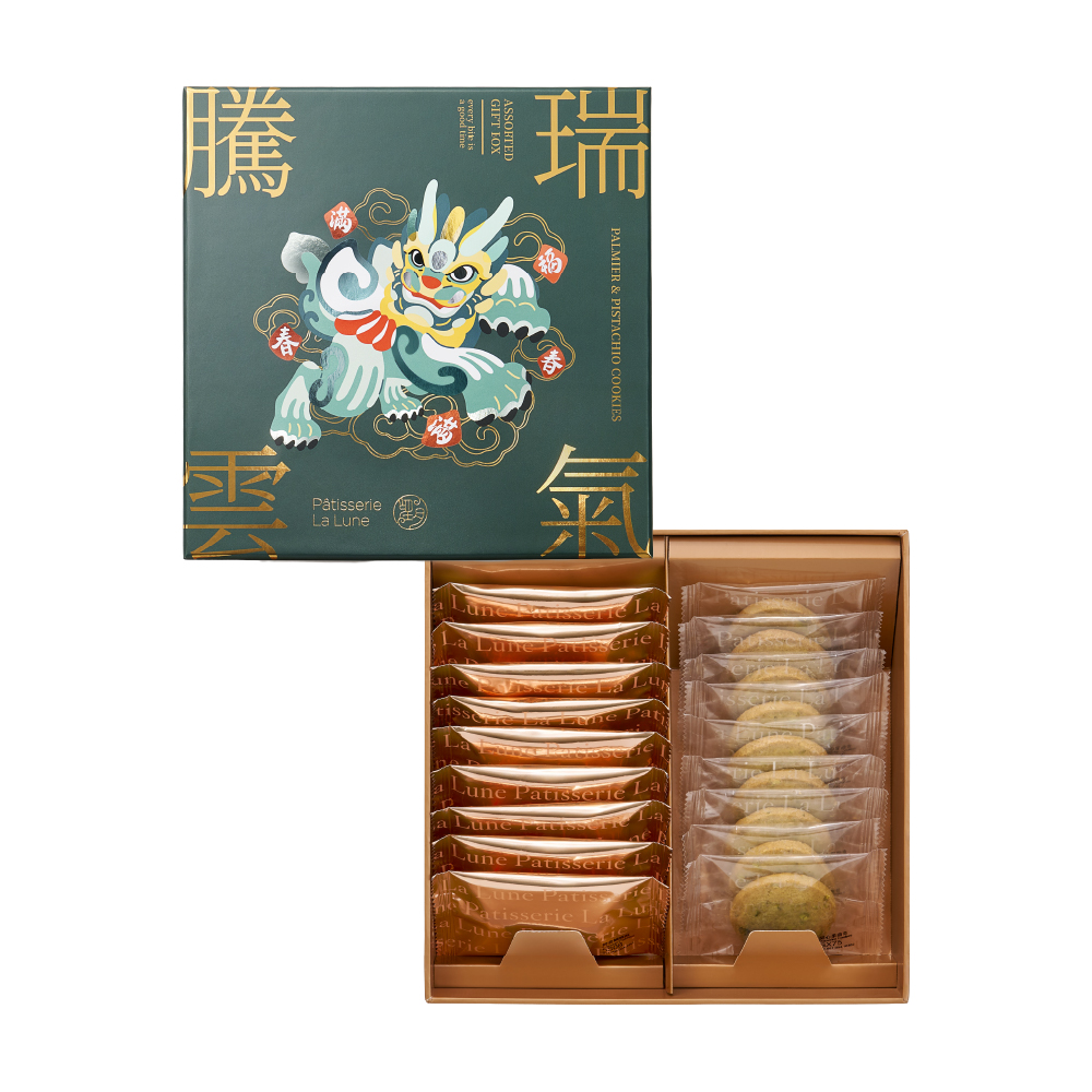 數量/包裝/淨重:→ 經典蝴蝶酥 9 件;每件獨立包裝;約 63 克;→ 開心果曲奇 9 件;每件獨立包裝;約 72 克;總淨重:→ 約 135克禮盒尺寸:220(W) x 220(D) x 52(H) mm