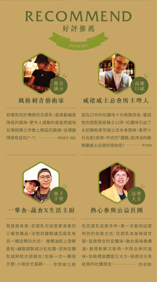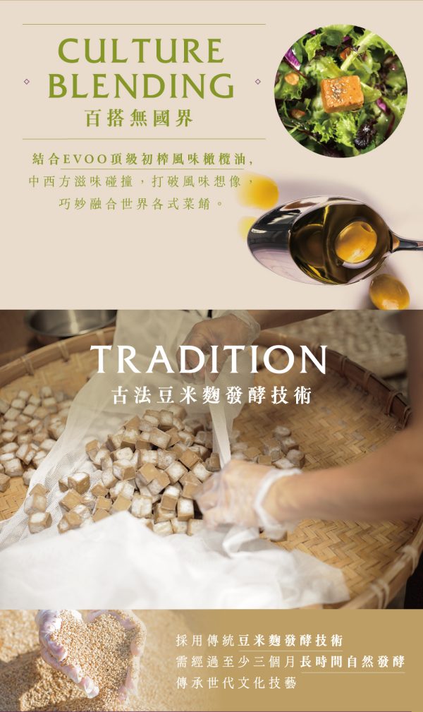 露酪來自宜蘭的精品級豆腐乳,結合健康減鹽的獨家配方與最新鮮的特級初榨橄欖油,醇香豐沛、絲滑綿密。手工日曬、精巧包裝,讓傳統美食跟上新時代,融入現代人的生活。不論搭配紅酒威士忌、佐生菜沙拉、抹早餐麵包,或拌入麵食料理,都能輕鬆享受食尚生活,精緻口感甚至媲美西式素食鵝肝醬,也是送禮自用兩相宜的高雅選擇,無論在台灣或出國,都能傳遞獨特東方美味與心意。