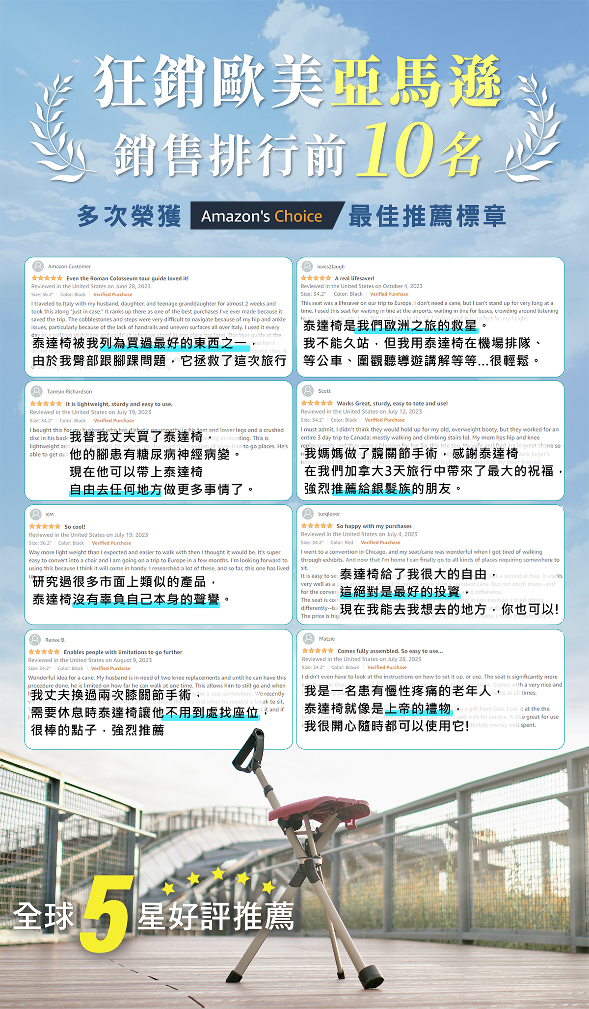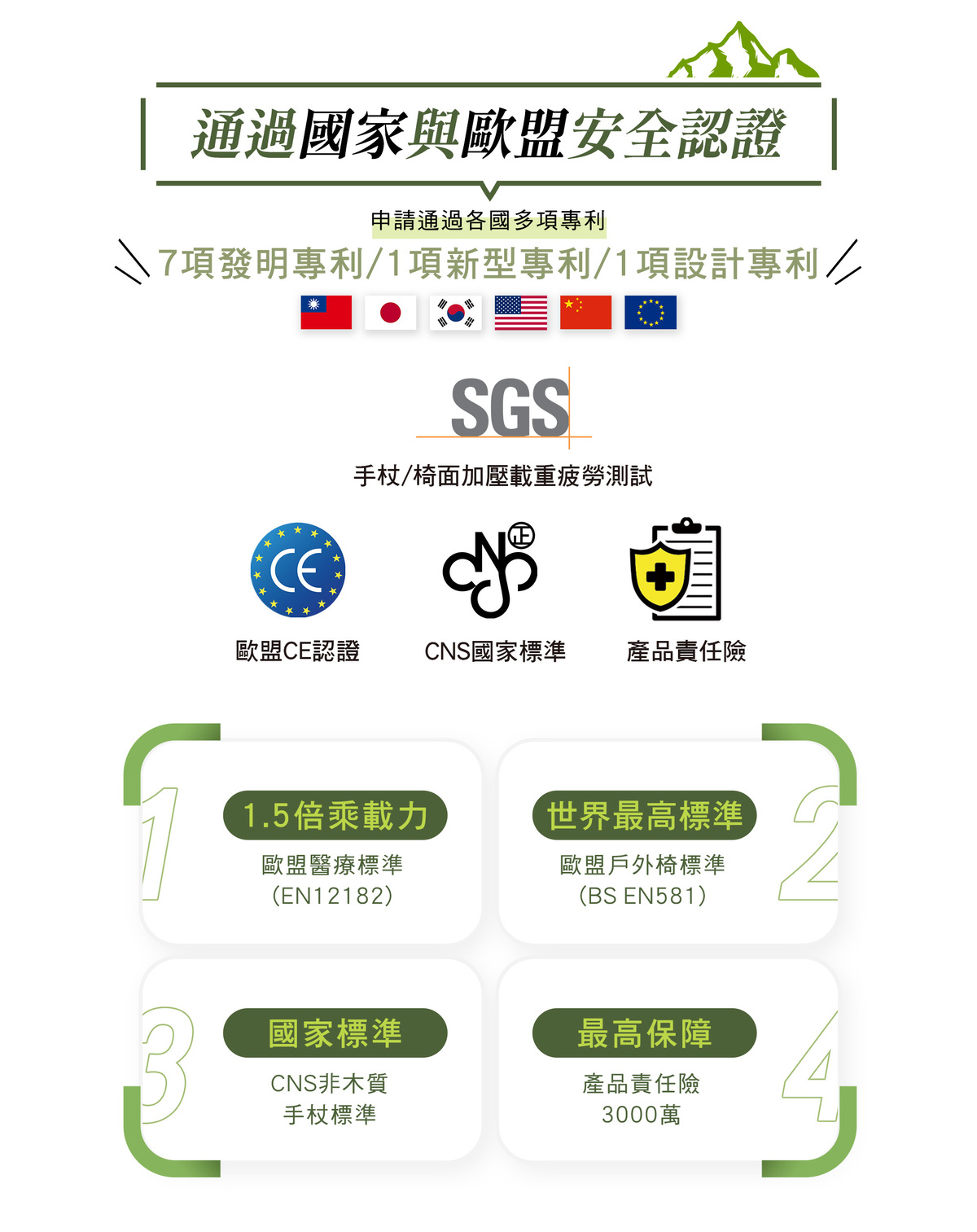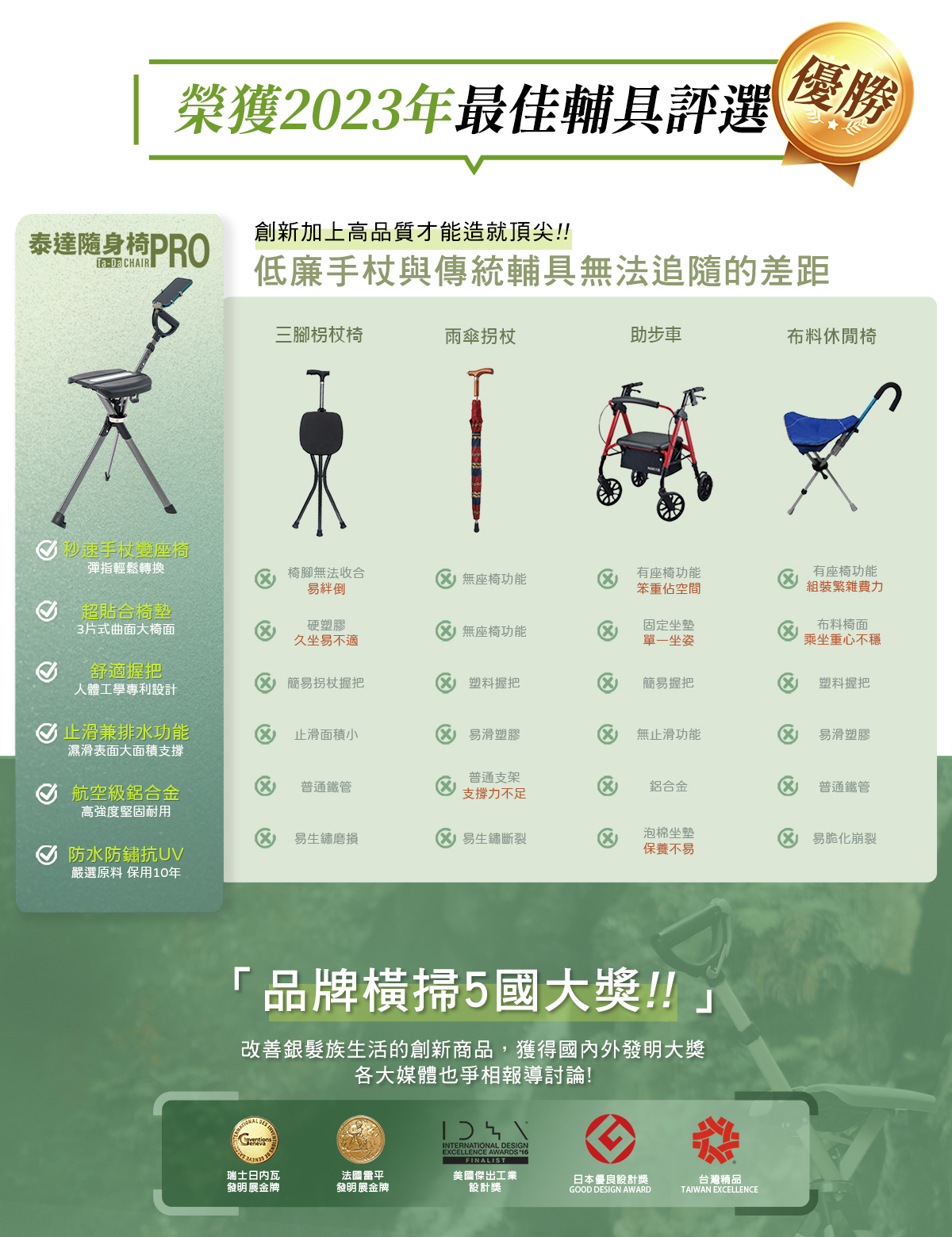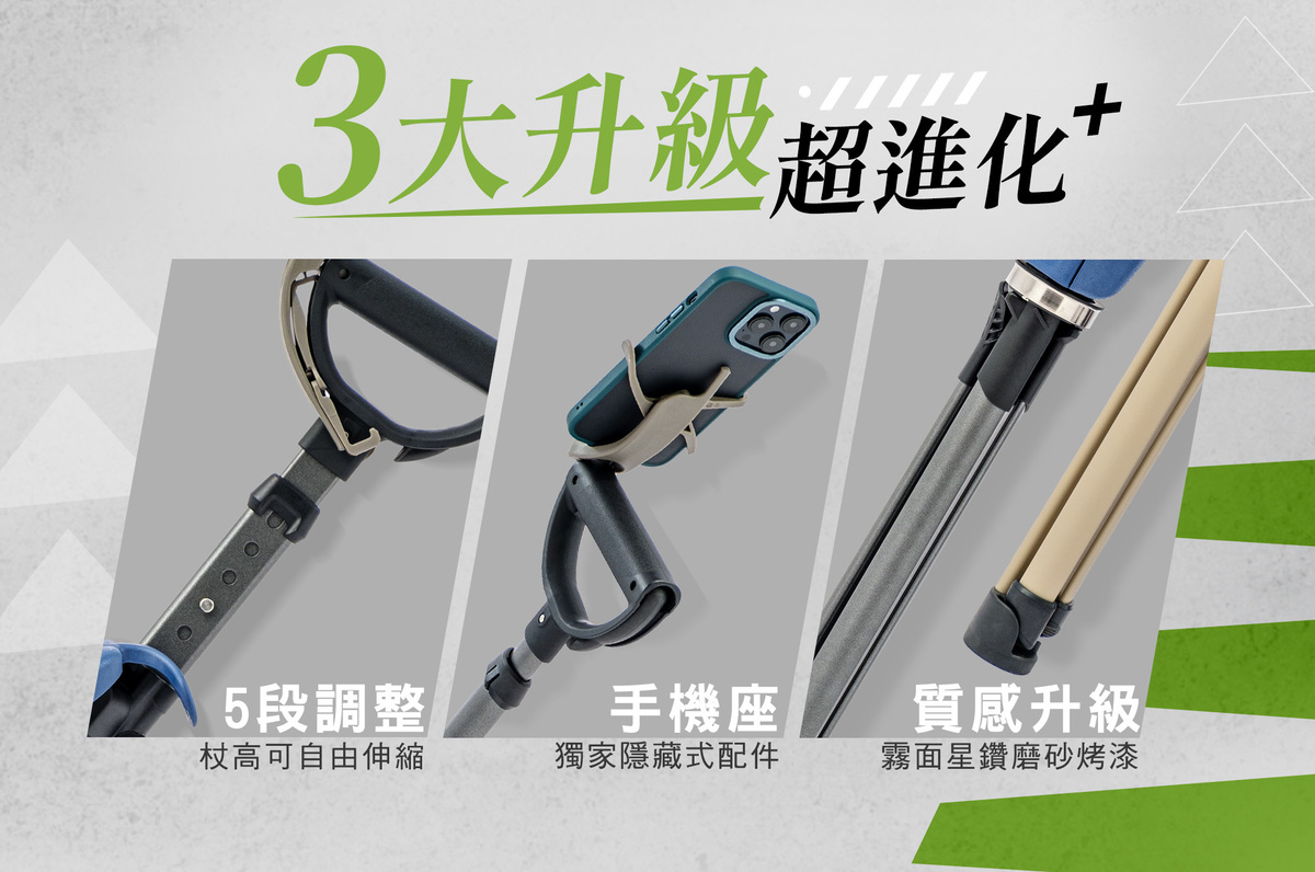 ●全新升級PRO,台灣50天破480萬募資●手杖座椅2合1,秒速開合輕鬆切換●自由伸縮,5段式杖高調節設計●羽量輕手感,136公斤超強載重●極度耐用耐操,航太等級防水防鏽抗UV●舒適貼合乘坐感,3片式超大椅面設計●質感升級,新配色與磨砂烤漆工藝●解放雙手,獨家手機座配件●獲選2023年經濟部評選最佳輔具優勝●適用多種活動用途:出國旅遊、戶外拐杖椅、可折疊座杖、登山助力杖、可坐式健走杖※適用對象 16歲以上能獨立行走🗹體重136KG以內※特別提醒▲產品1年保固▲本產品非醫療商品▲可帶上飛機▲本商品不提供背袋 需額外加購