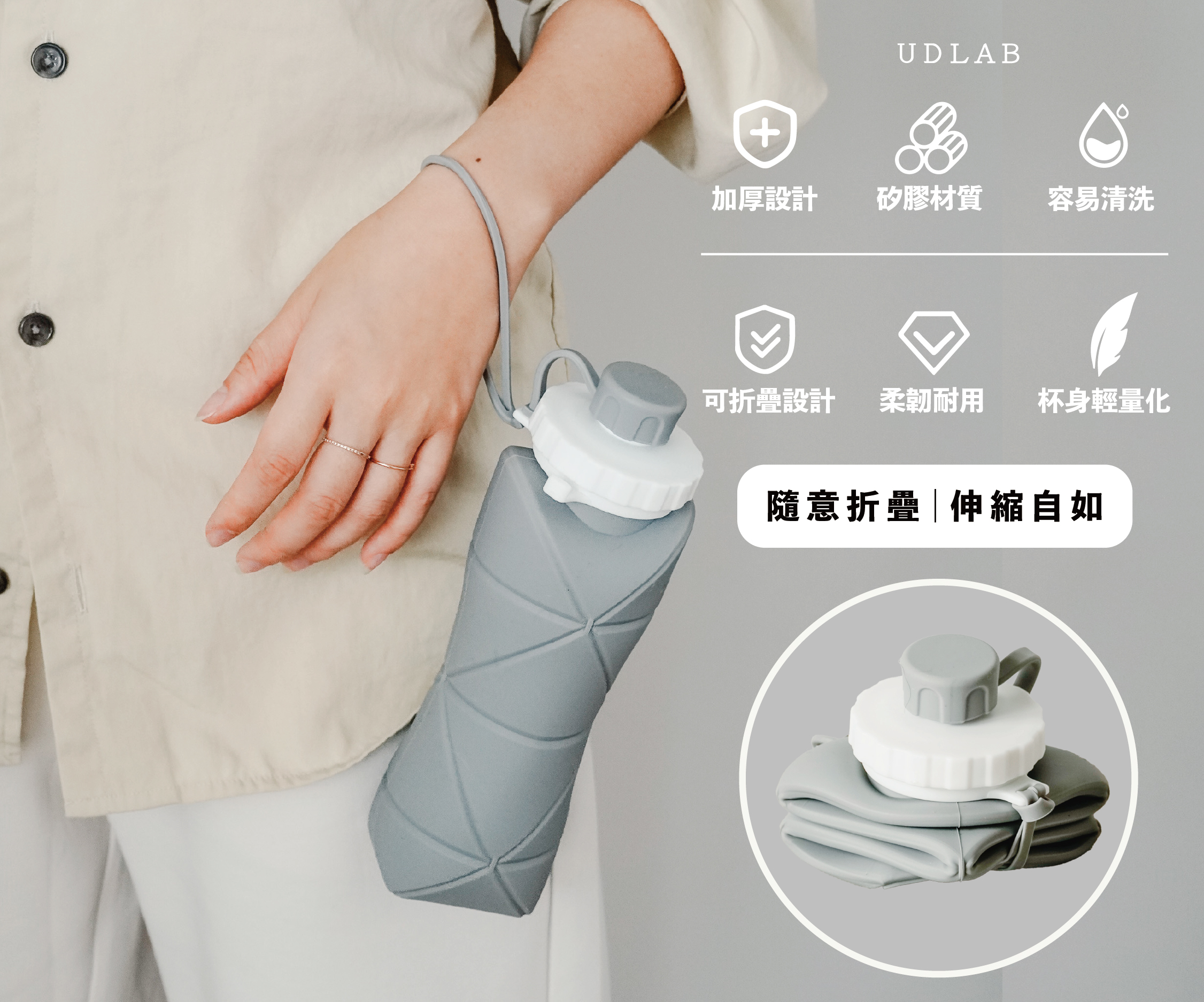 這款矽膠折疊水壺幫你節省 80% 體積,收納後只有 6.5cm,小到可以放進背包角落✨