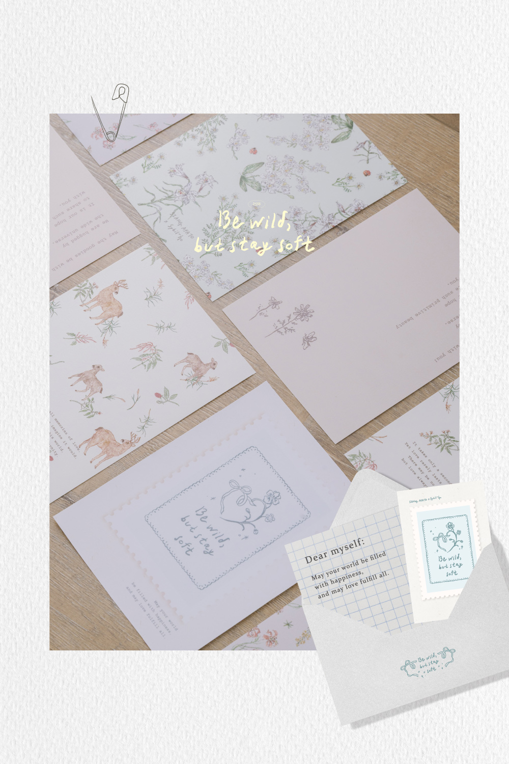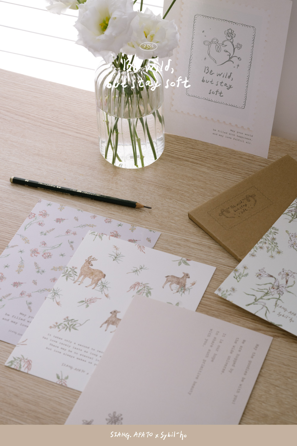 「蘊含力量,又能溫柔以待。」◆ 一套共5張,可貼牆裝飾,也可當卡片◆ 300g藝術紙材質,質感一級棒◆ 尺寸:15*20cm