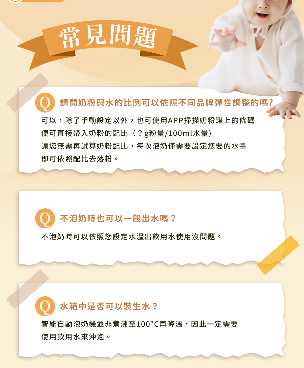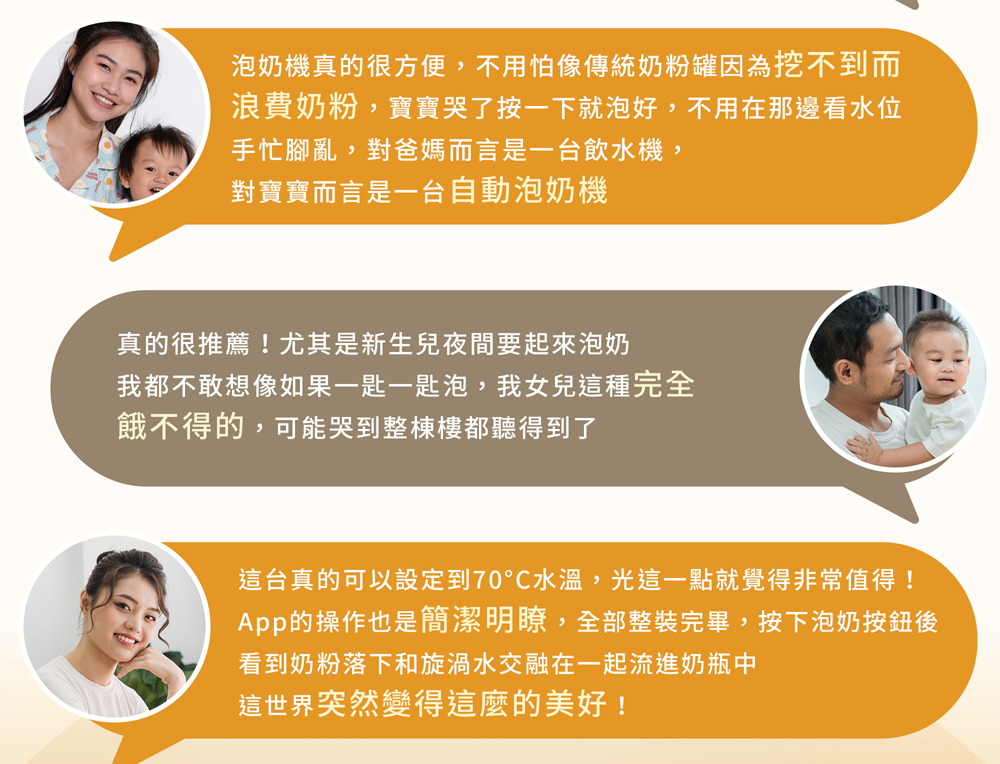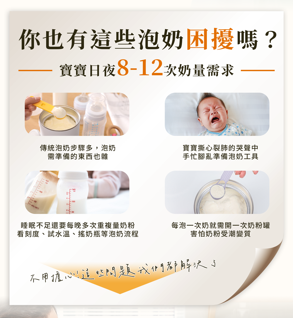➊ 配比設定好之後,機器會依照水量自動計算需要多少的粉量。不需要再去更動,即可達成一鍵泡奶!☺貼心提醒:若有更換奶粉,一定要重新設定配比喔!