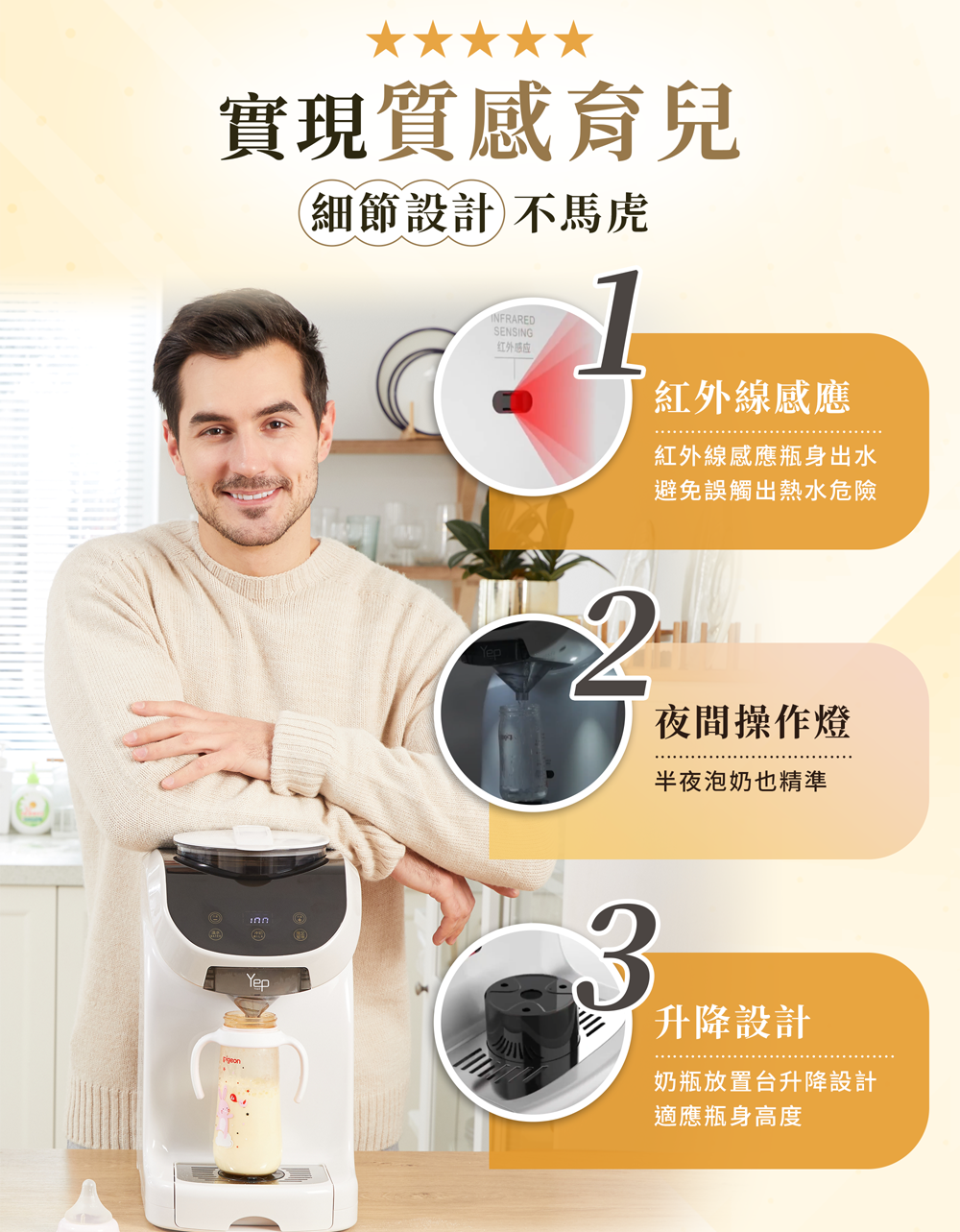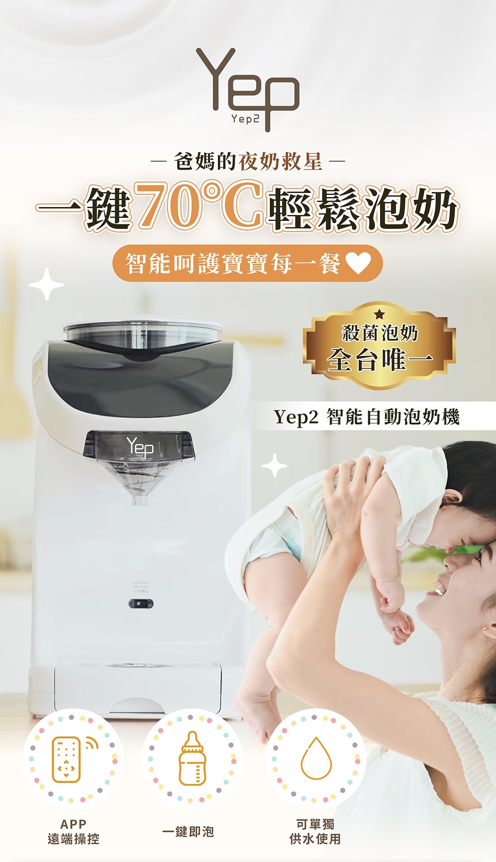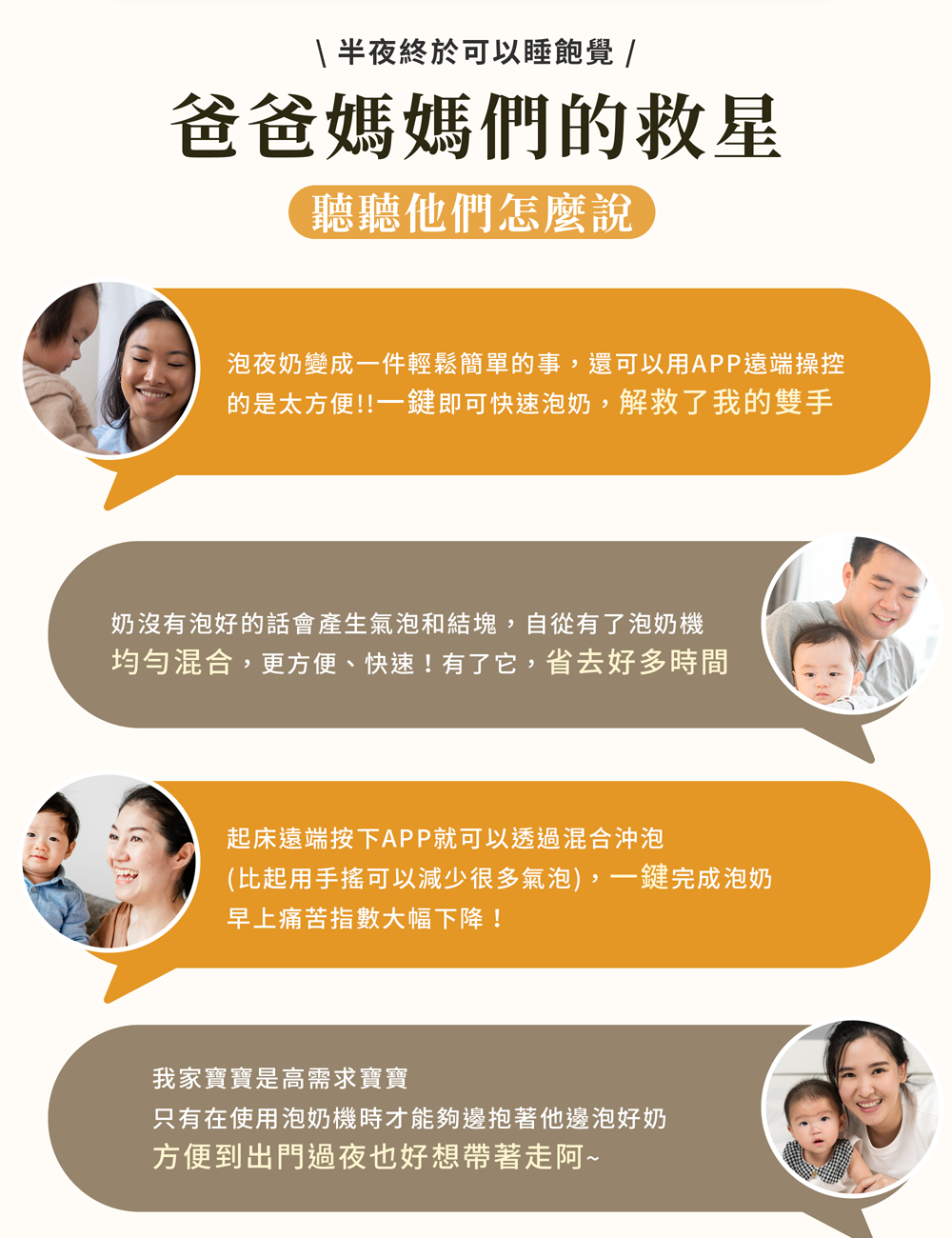 ➊ 配比設定好之後,機器會依照水量自動計算需要多少的粉量。不需要再去更動,即可達成一鍵泡奶!☺貼心提醒:若有更換奶粉,一定要重新設定配比喔!