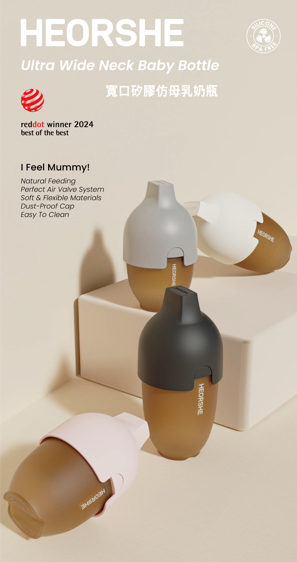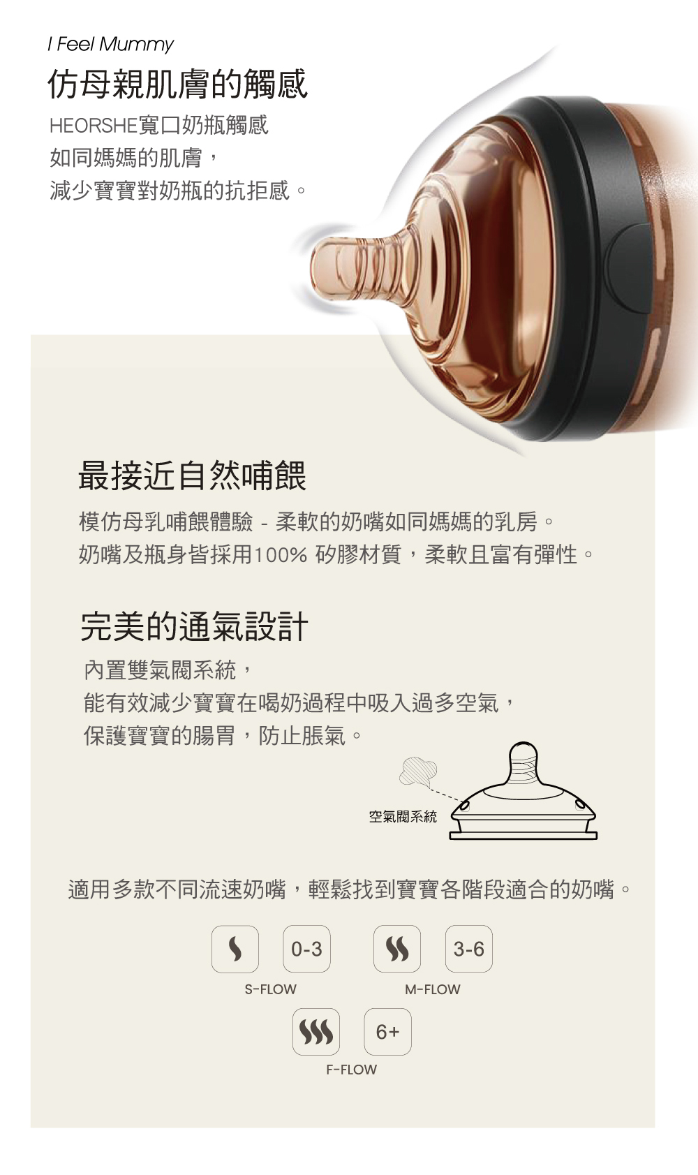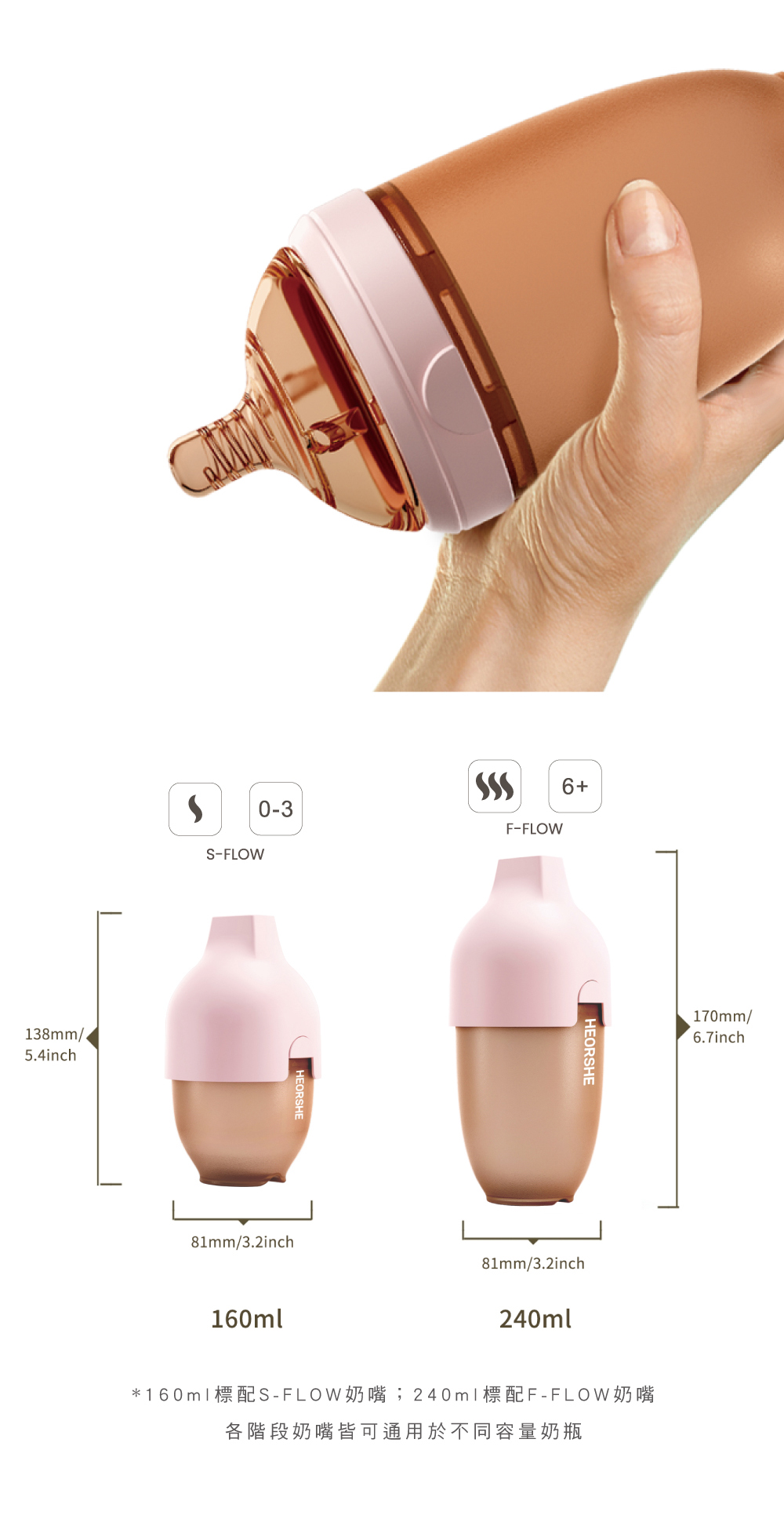 ◎ 寬口矽膠仿母乳奶瓶 160ml商品尺寸:8.5x8.5x13.7cm商品材質:矽膠(瓶身、奶嘴) / PPSU(瓶頸) / PP(瓶蓋)產品重量:130g奶 嘴:搭配 S-FLOW 低流速奶嘴耐熱溫度: 瓶身、奶嘴、瓶頸(-20°C~180°C) / 瓶蓋(-20°C~100°C)商品產地:中國